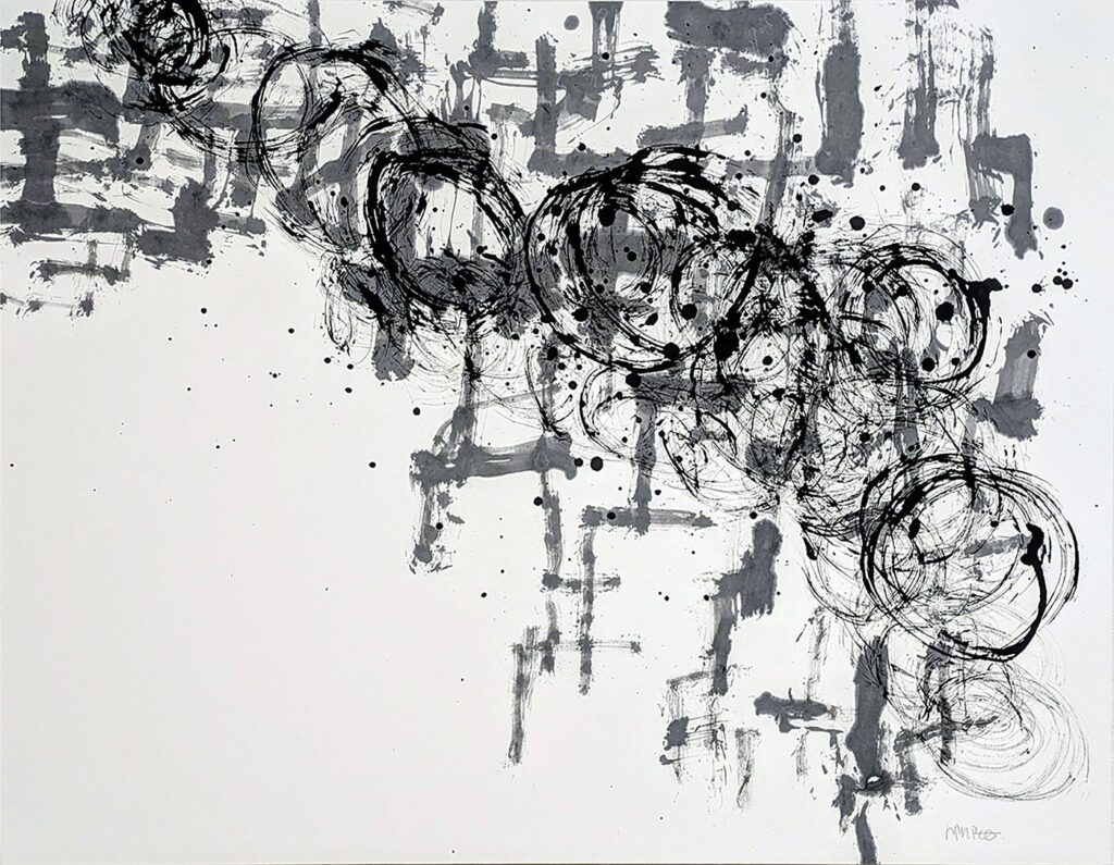 展示は、墨の滲みや掠れ、重なりといった現象を通じて、意味が立ち上がる直前の「深さ」そのものを提示することを目的としています。作品は墨と余白の関係や、静と動が同居する表現を軸に構成されます。