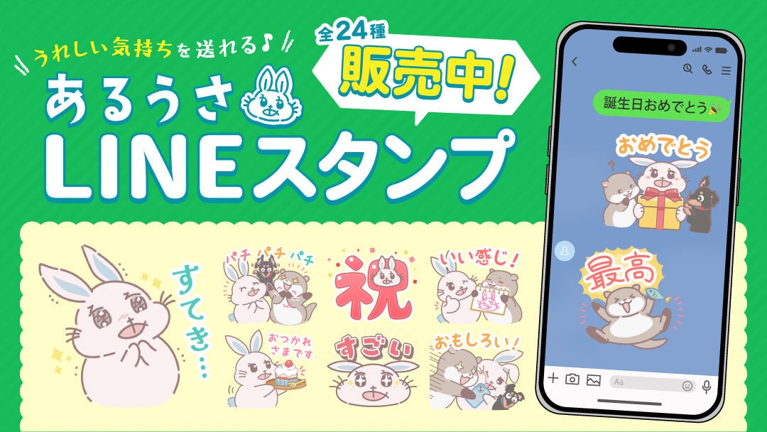 「うれしい気持ちを送れる」第3弾あるうさLINEスタンプを創作品モール「あるる」が4周年記念で販売開始