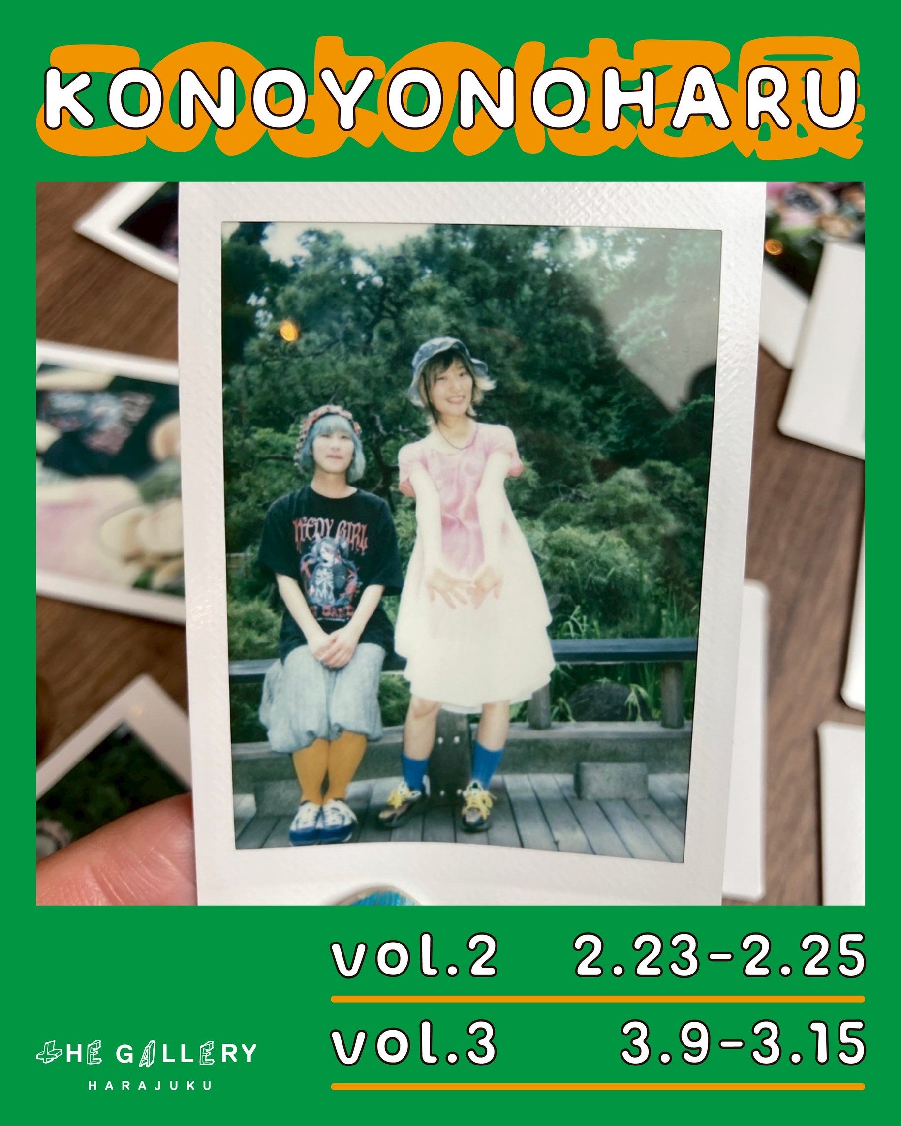 tHE GALLERY HARAJUKU(東京都渋谷区神宮前3丁目20-21)で、パフォーマンスユニット「このよのはる」のソロ展示「このよのはる展 vol.3」が2026年3月9日〜15日に開かれます。開館時間は11:00〜19:00で、休廊日は月・火曜日です。初日の3月9日には18:00〜20:00にレセプションを予定しています。