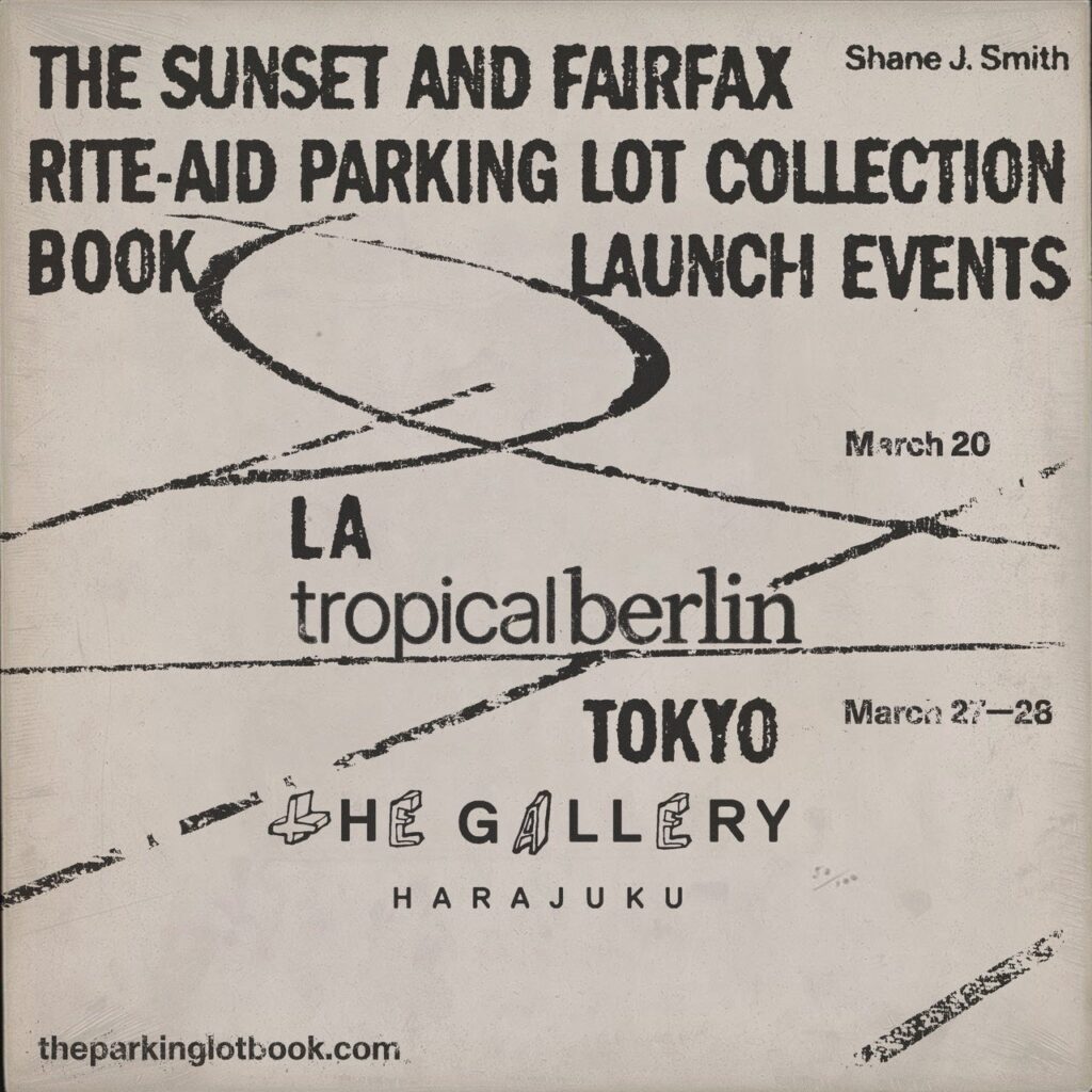 写真家SHANE SMITH(シェーン・スミス)のローンチイベント/個展「LAの駐車場にて-THE SUNSET AND FAIRFAX RITE-AID PARKING LOT COLLECTION」が、tHE GALLERY HARAJUKU(東京都渋谷区)で2026年3月27日と28日に開かれます。27日は18:00〜21:00にBOOK LAUNCH PARTY、28日は12:00〜19:00にLAUNCH EXHIBITIONを実施します。