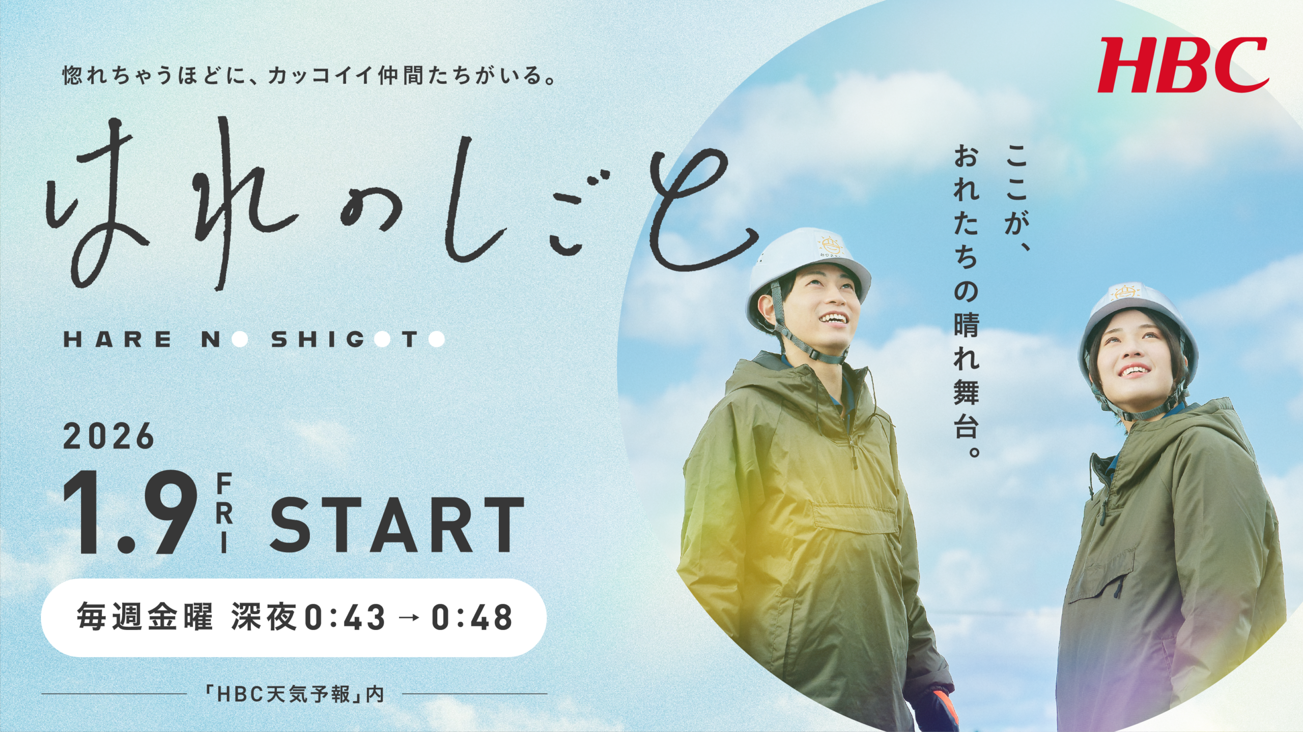 北海道放送(HBC)は、建設業を題材にしたタテ型ショートドラマ「はれのしごと」を、2026年1~3月の毎週金曜深夜0:43~0:48に「HBC天気予報」内で放送します。1話75秒で全12話となり、天気予報CGもタテ型放送に合わせて改修します。建設企業で組織するCIC(建設イノベーション・コンソーシアム)と連携し、札幌市も協力します。物語は建設会社の新人施工管理・陽介が現場で失敗を重ねつつ、同期や先輩、作業員、所長らと働く中で建設業のやりがいを学ぶ内容です。脚本は前田悠希さん、成瀬大策さんが担当し、制作はフラッグが担います。短尺・縦画面のドラマを地上波の天気枠で一体放送する試みは、視聴習慣のある枠で職業理解を促す狙いがうかがえ、放送後は公式サイトで出演者情報やアーカイブ展開が進む見通しです。