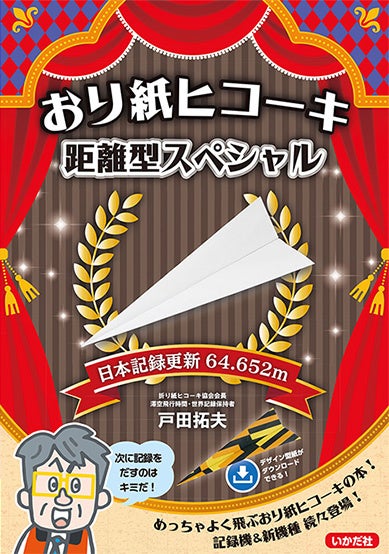 折り紙ヒコーキの飛距離日本記録64.652mを出した機体の折り方を載せた書籍『おり紙ヒコーキ 距離型スペシャル』が、2025年12月24日に発売されます。記録は2024年12月16日に更新され、投てき者は阪神タイガースの梅野隆太郎選手です。定価は1,760円(税込)、B5判72ページです。