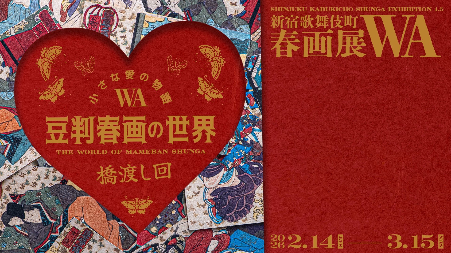 新宿・歌舞伎町のアートスペース「BOND」(東京都新宿区歌舞伎町1-2-15)で2026年2月14日~3月15日、企画展「小さな愛の物語―豆判春画の世界―」が開かれます。江戸時代後期の豆判(約9cm×12.3cm)春画を約100点まとめて展示し、入場は日付指定制で18歳未満は入れません。料金は一般1,100円、学生700円です。