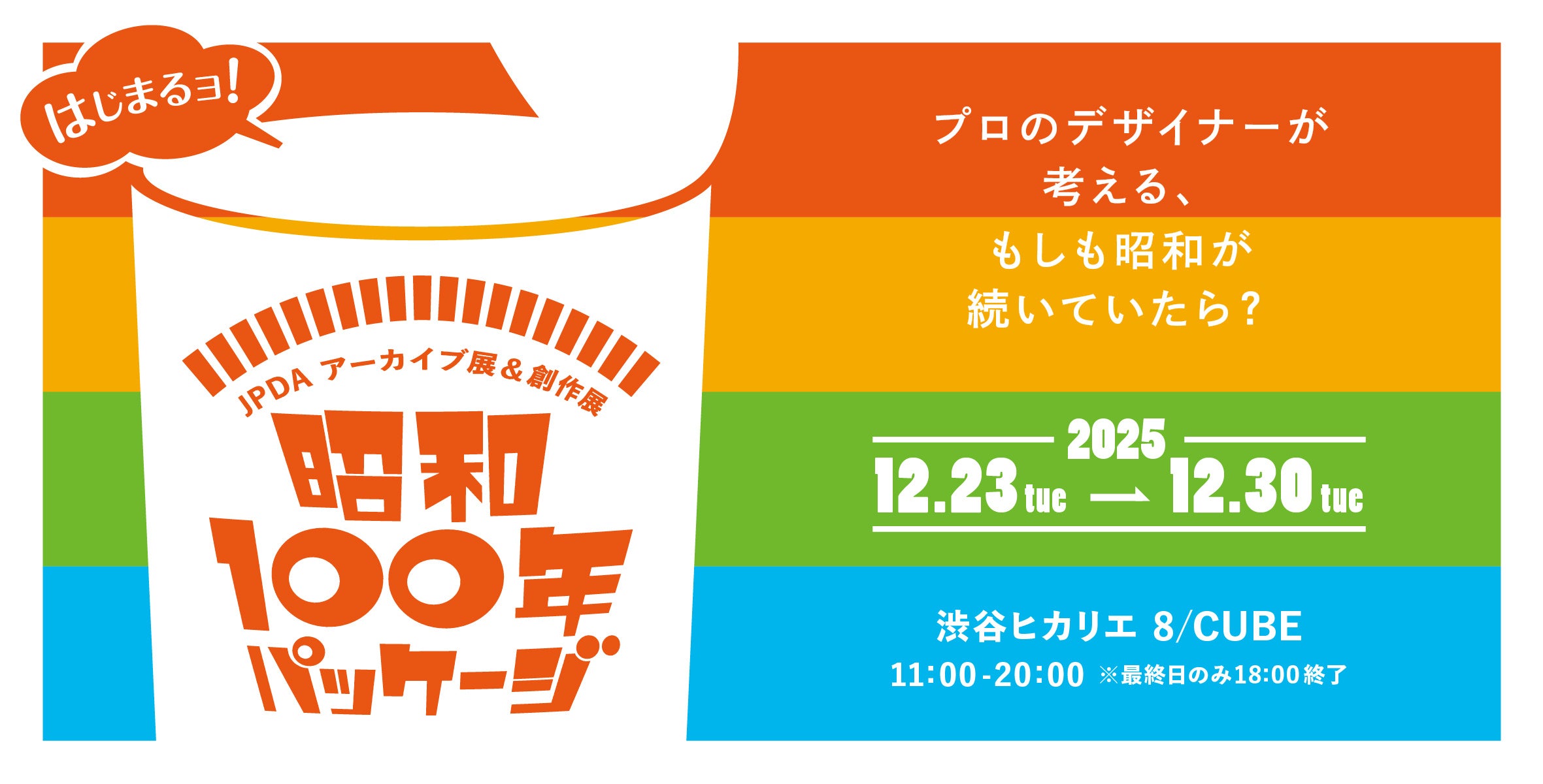 日本パッケージデザイン協会は、昭和時代のパッケージとその未来像を一度に紹介する展覧会「昭和100年パッケージ」を、2025年12月23日〜30日に渋谷ヒカリエ8/CUBEで開催します。会期中は11時〜20時(最終日は18時まで)で、入場は無料です。