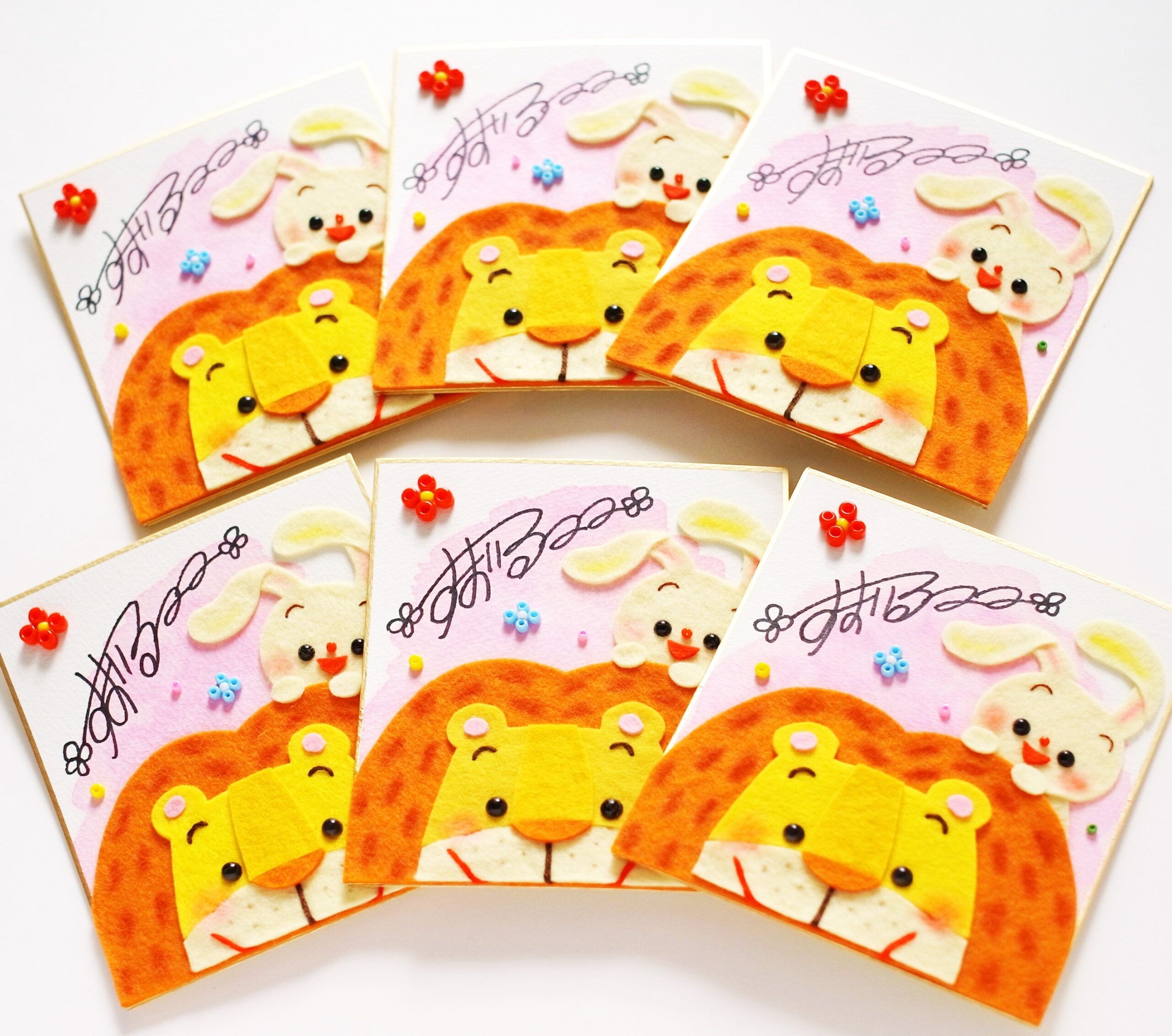 対象となる絵本は2024年11月13日発売で、判型は225×225mm、44ページ、ISBNは978-4-888574-413-6です。特典のミニ色紙は、ライオンと子ウサギをテーマにした手作り品で、名入れはありません。手作りのため、個体ごとに風合いが異なるとしています。