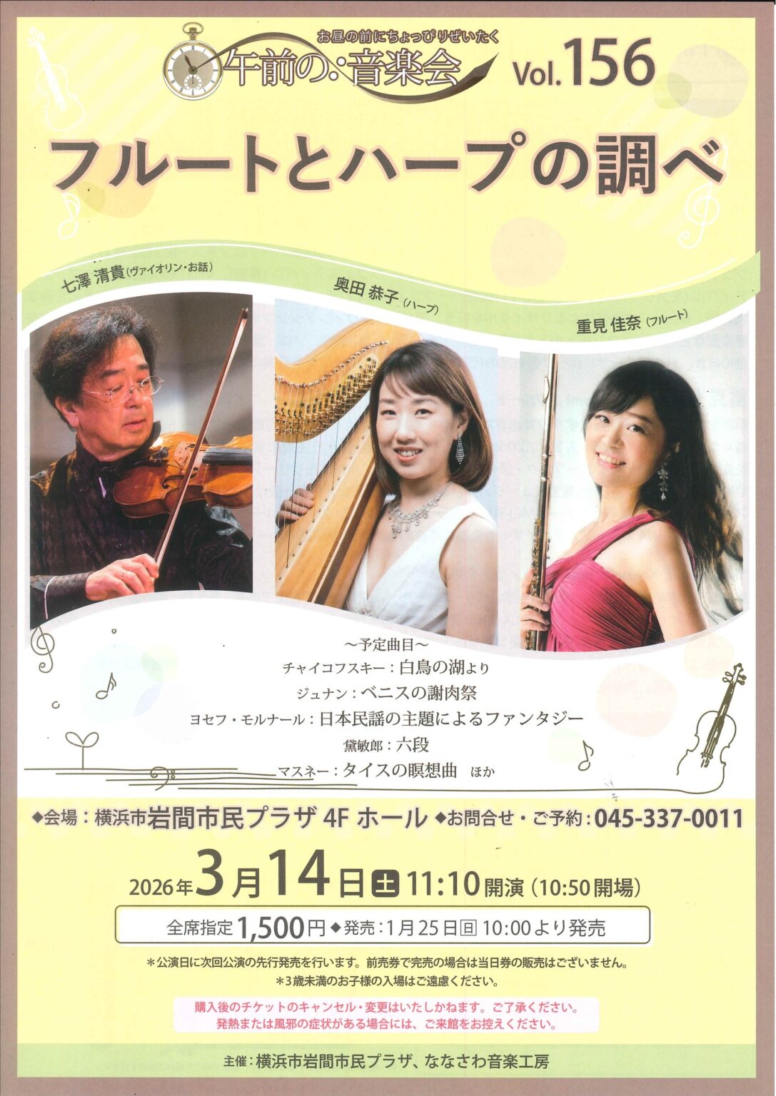 チケット取り扱い:横浜市岩間市民プラザ Tel:045-337-0011(9:00~21:00 休館日=2026/2/16、3/2)