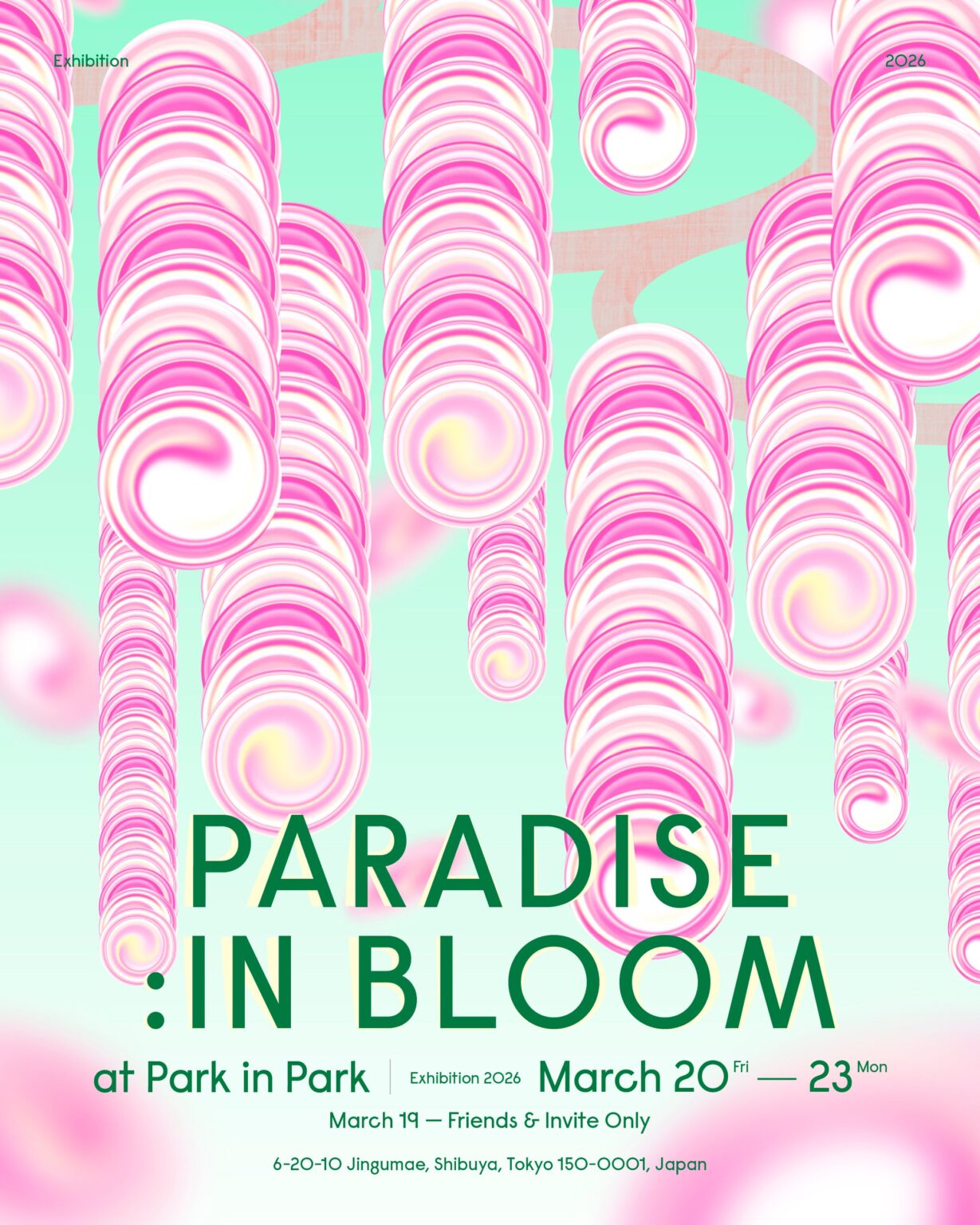 クリエイティブエージェンシー「paradise」は、創業2周年に合わせたインスタレーション展示「PARADISE : IN BLOOM」を2026年3月20日から3月23日までの4日間、渋谷のMIYASHITA PARK内「Park in Park」で開催します。入場はフリーエントランスです。