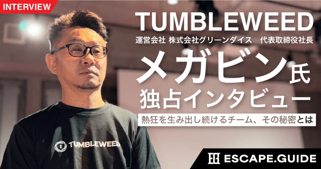 謎解き・脱出ゲーム専門メディア「ESCAPE.GUIDE」は2025年12月27日、インタビュー連載「Top Interview」の第1弾として、下北沢発の謎解きレーベル「Tumbleweed(タンブルウィード)」代表・メガビン氏のインタビュー記事を公開しました。記事では、創業時の経緯や作品づくりの哲学、今後の構想を取り上げています。連載の狙いは、イベント情報中心になりがちな業界情報に対し、制作団体の意思決定や理念といった背景を深掘りして伝える点にあります。インタビューでは「面白さを最優先する姿勢」や、謎解きの参加者層を広げる考え方など、公演参加だけでは把握しにくい制作側の視点を整理しています。運営元のESCAPE合同会社は東京都品川区に拠点を置き、東京大学の謎解き制作団体出身メンバーを中心に立ち上げたチームとして、関連メディアやポータル運営を通じ「謎解き文化のインフラ」づくりを掲げます。今後は複数団体のトップへの取材を継続する方針で、業界の知見共有と裾野拡大につながるかが焦点です。