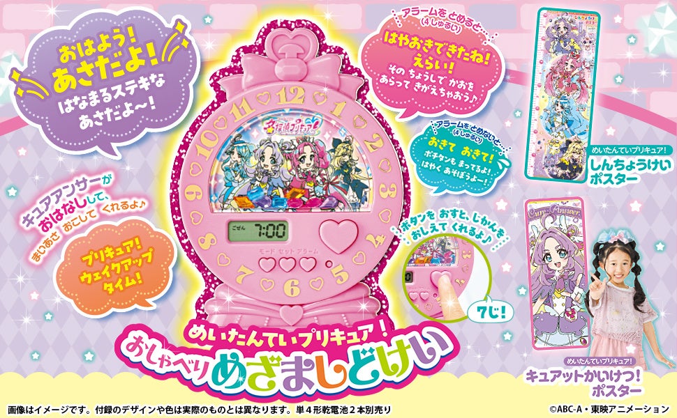 付録の目覚まし時計は「名探偵プリキュア!」仕様で、キュアアンサーのボイスメッセージを搭載します。幼稚園児など子どもと保護者、プリキュアファンを主な対象とし、新学期を迎える時期に合わせた内容です。