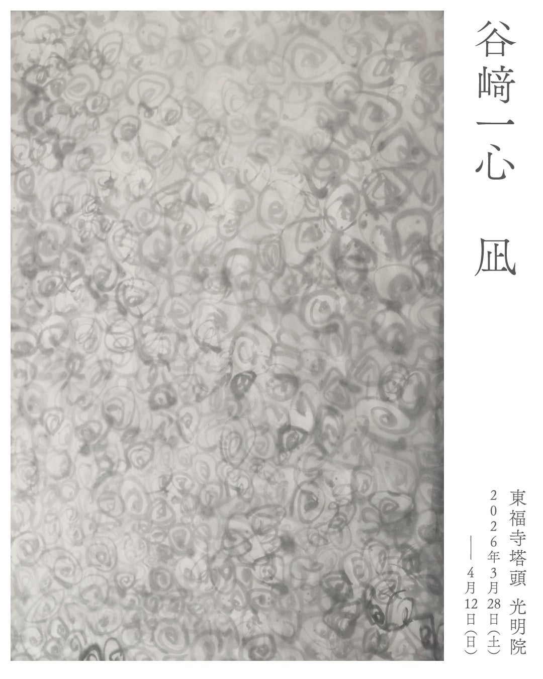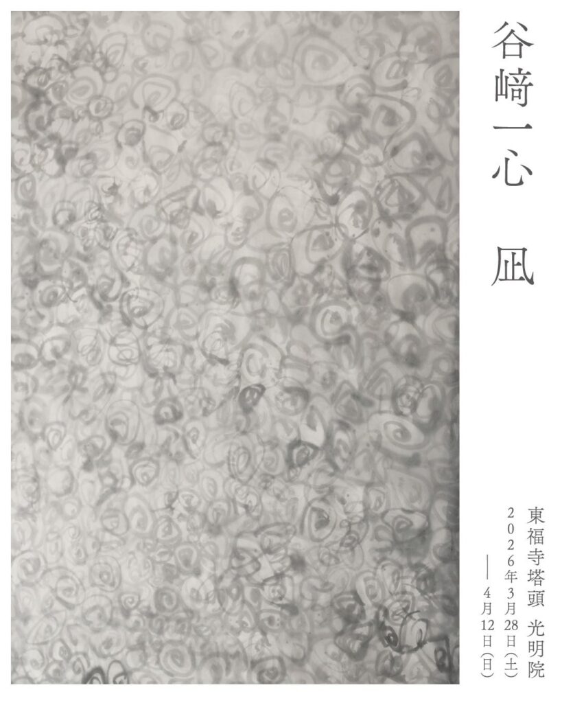 ルーフギャラリーは、アーティスト谷﨑一心の個展「凪」を京都市東山区の東福寺塔頭 光明院で2026年3月28日(土)から4月12日(日)まで開きます。開場は7:00〜日没までで、参拝料は500円です。新作を中心にペインティングと、作家初となる水墨による襖絵12点を展示します。
