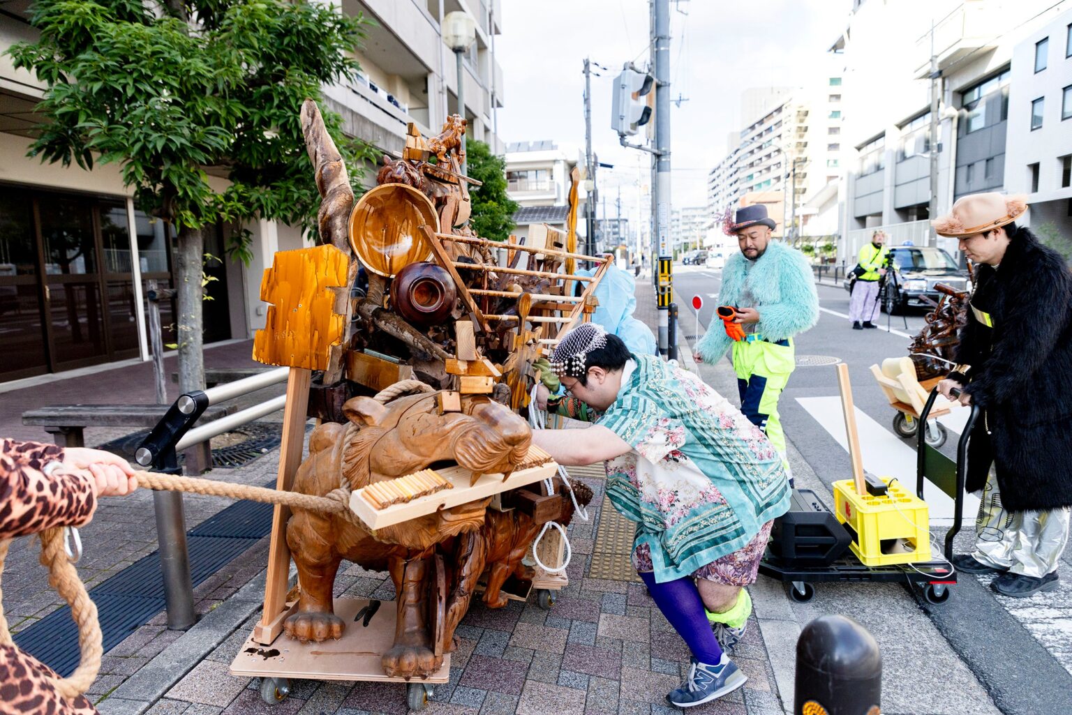 会場では、dot architectsが設計した大型構造物「tower」を、煌びやかな衣装をまとったスタッフが解体・運搬・再構築するパフォーマンスも実施。展覧会準備という本来は裏方の行為を見せることで、「作品ができるまでの時間とプロセス」を鑑賞体験の一部として可視化します。荒木優光や小松千倫、contact Gonzoらから成る「the constructions」と、京都市立芸大の学生・プログラム参加者が参加し、創造と教育、建築空間が交錯する場を立ち上げます。