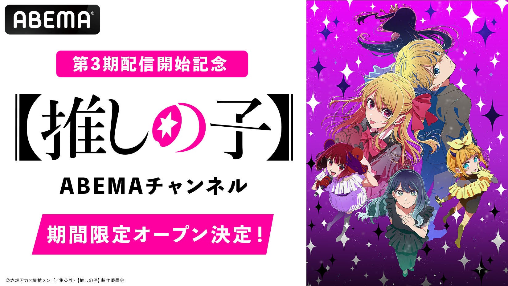 ABEMAはアニメ『【推しの子】』第3期の配信開始に合わせ、期間限定の「【推しの子】ABEMAチャンネル」を初めて開設し、2026年1月13日19時30分から1月18日21時30分までの6日間、第1期・第2期の全24話を毎日無料で順次配信します。第3期は1月14日23時から、以降毎週水曜23時に地上波同時で、ABEMAにおける単独最速の無料配信として提供されます。配信はABEMAアニメチャンネルで行い、チャンネル開設期間中は一挙配信で過去作をまとめ見できる設計です。さらに第3期の配信期間中は、第1期から第3期の最新話までをいつでも無料で視聴できるとしており、新規視聴者の追いつき需要と継続視聴を同時に狙う施策となります。今後は、同時配信を軸に視聴導線を強化しつつ、作品別の期間限定チャンネルを活用した無料配信の展開が広がる可能性があります。