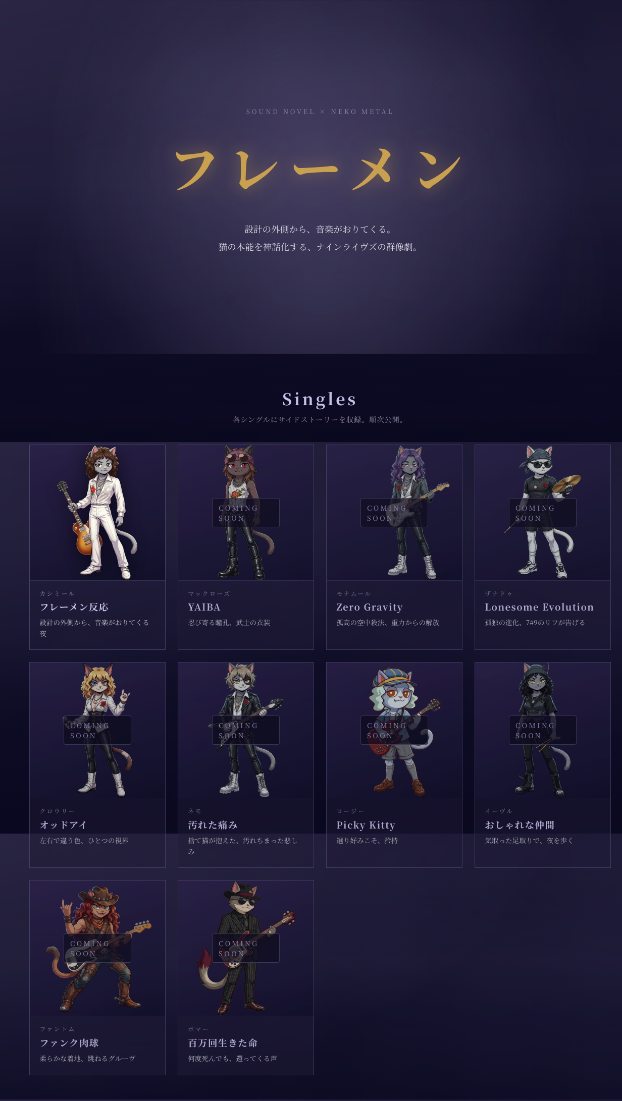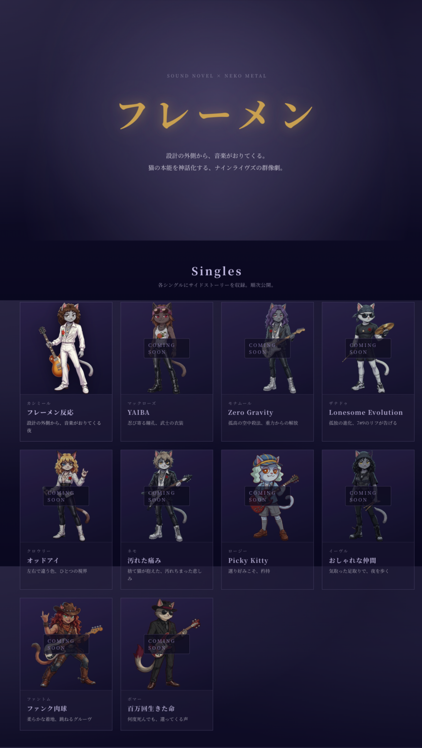 今後はシングルとサイドストーリーを連載形式で順次公開し、YouTubeチャンネル(@flehmen_jp)でMVも段階的に追加する予定です。バンドの世界観を体験できるサウンドノベルゲームは開発中としています。