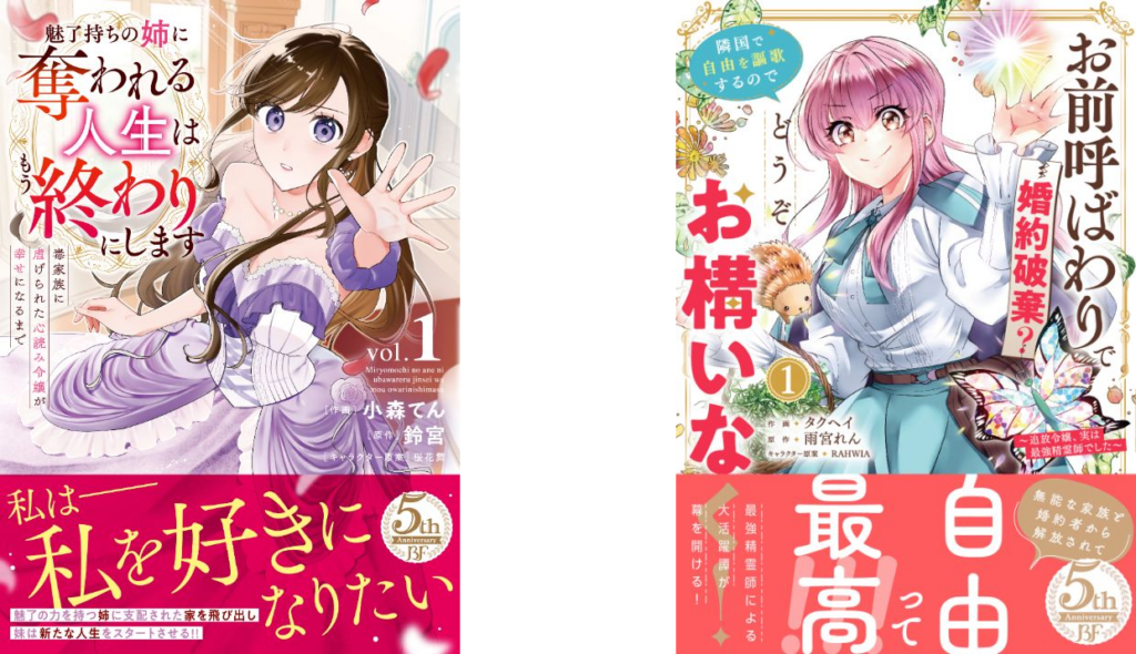 新刊には「魅了持ちの姉に奪われる人生はもう終わりにします」1巻(770円)、「お前呼ばわりで婚約破棄?」1巻(770円)のほか、「冷酷な獣人王子に身代わりで嫁いだら」3巻(803円)などをラインアップします。いずれも小説投稿サイト「Berry’s Cafe」発の“異世界”と恋愛要素を軸にした作品群で、紙での購読機会を広げる狙いです。