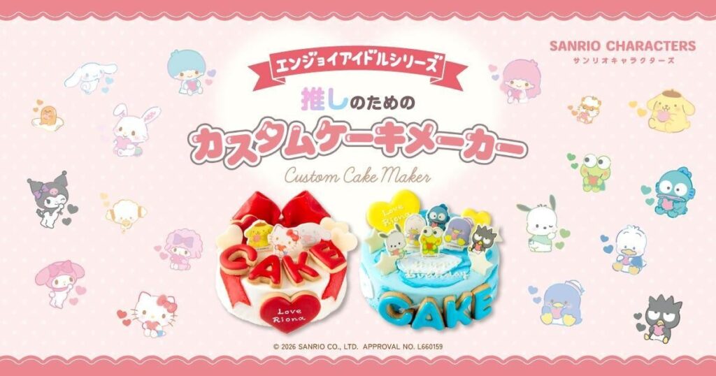 Cake.jpは2026年3月12日12時30分、サンリオキャラクターズ「エンジョイアイドルシリーズ」とのコラボ企画『推しのためのカスタムケーキメーカー』をリニューアルし、1つのケーキで複数キャラクターを選べる仕様に変更しました。背景には、同シリーズのカスタムケーキ注文数が昨年比200%(約2倍)に伸びたことがあります。