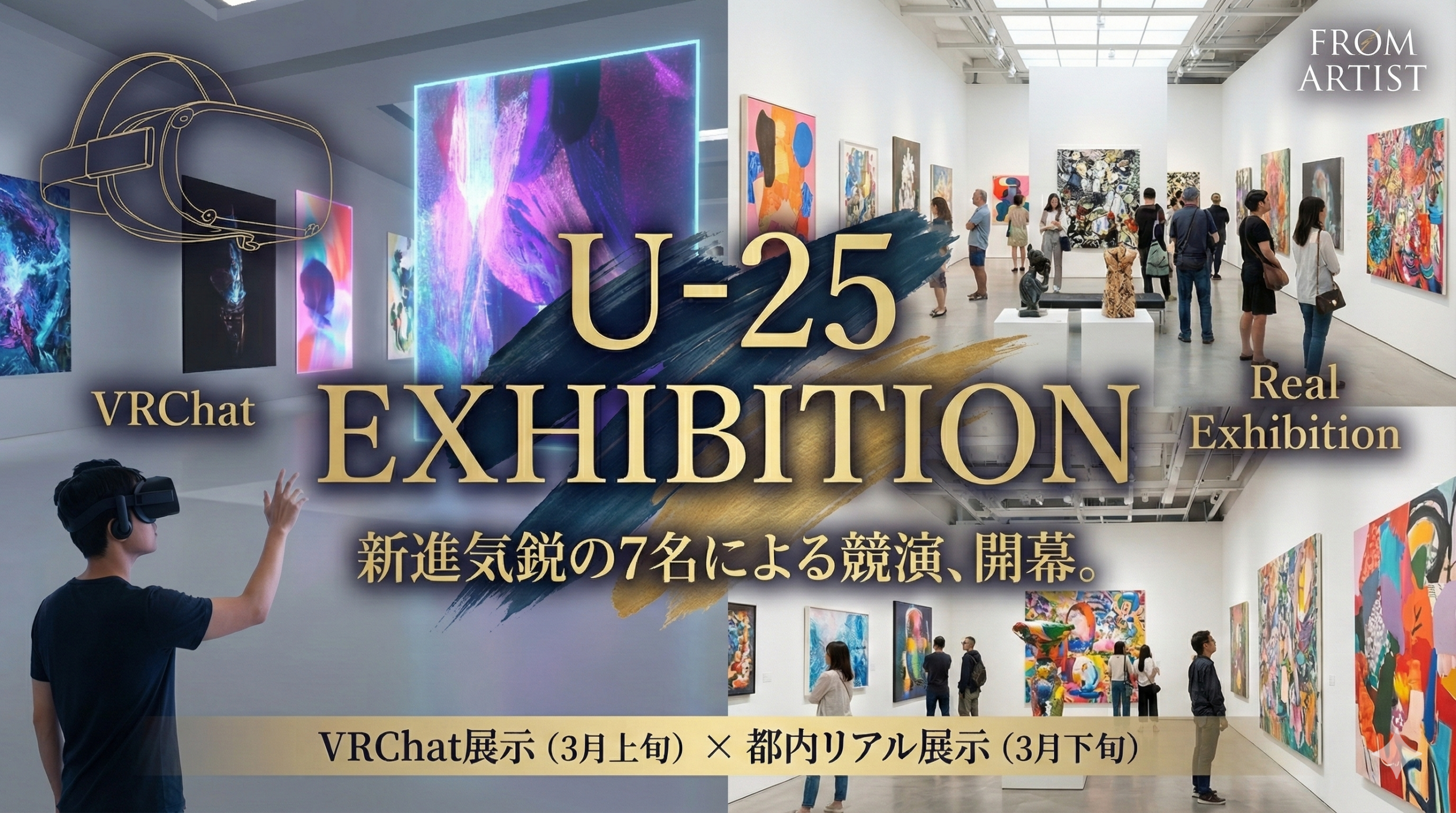 アートマーケットプレイス「FROM ARTIST」(運営:BUSCA合同会社、茨城県水戸市)は1月28日、次世代アーティスト支援企画「U-25 EXHIBITION」で採択アーティスト7名を決めたと発表しました。2月からインタビュー動画と特集記事を順次公開し、3月上旬にVRChat展示、3月下旬に都内会場でリアル展示を予定しています。