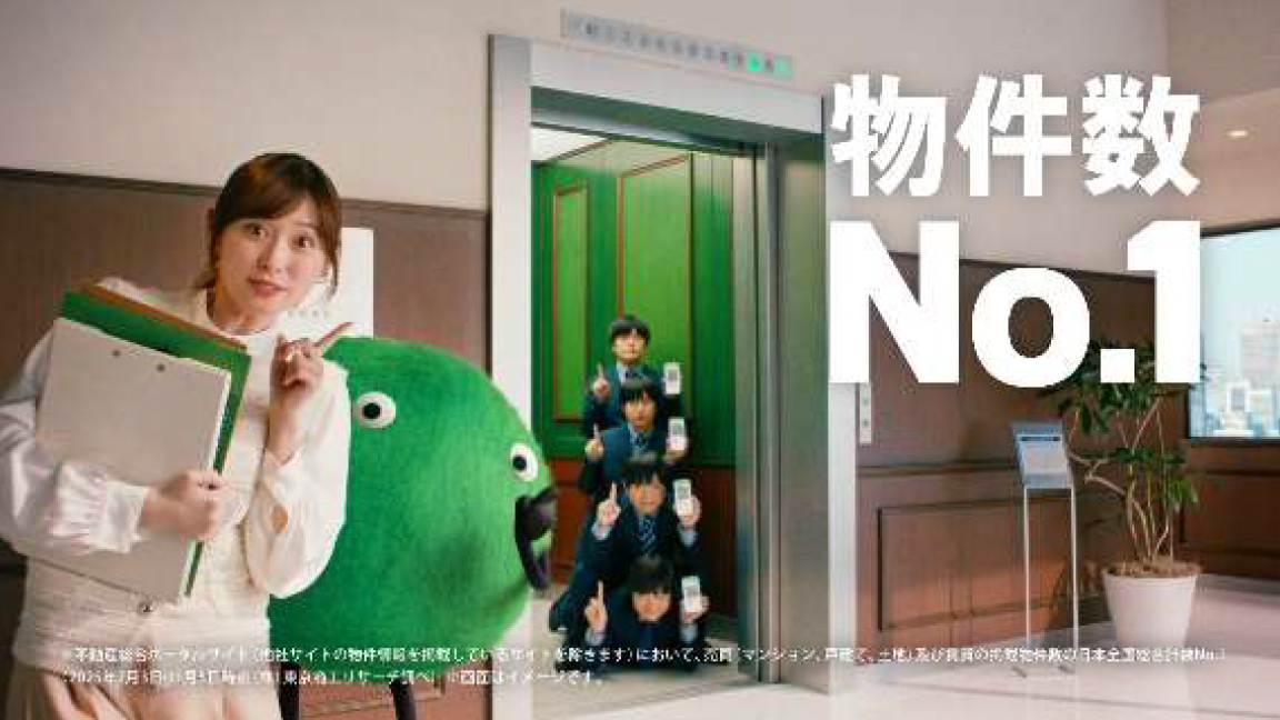 CMはオフィスビルのエレベーター内で、バカリズムさんが「家買うときも『SUUMO』なの」と語り、福原さんが「も?」と返す掛け合いから展開します。住まい探しの軸が購入・賃貸に分かれがちな中、同サービスは両方を横断して検索できることが特徴で、選択肢を広げたい層に向けた訴求です。