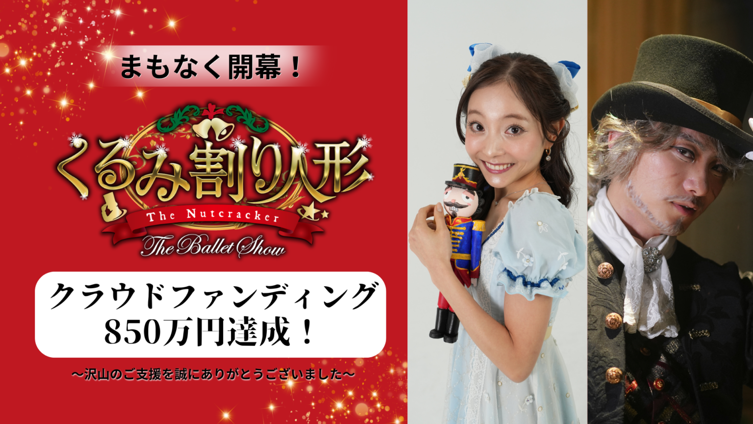 エンタメバレエ団「The Ballet Show」は、新作公演『くるみ割り人形 The Ballet Show』の制作に向けたクラウドファンディングで、支援者985人、支援総額8,548,500円(約850万円)を集めました。資金は出演ダンサーの報酬・旅費、会場費、舞台美術や照明・衣装など演出の強化、観客参加型の体験演出の実装に充てるとしています。