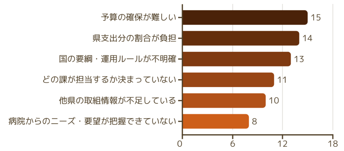 一方、令和8年度については「実施予定・検討中」が16自治体あるものの、このうち8自治体は担当部署が未決定でした。「実施予定なし」も16自治体あり、補助金の運用課題として予算確保や自治体側の50%負担の厳しさを挙げる回答もあったということです。補助事業とは別に独自予算で支援を行う自治体は3自治体(青森県、大分県、鳥取県)でした。