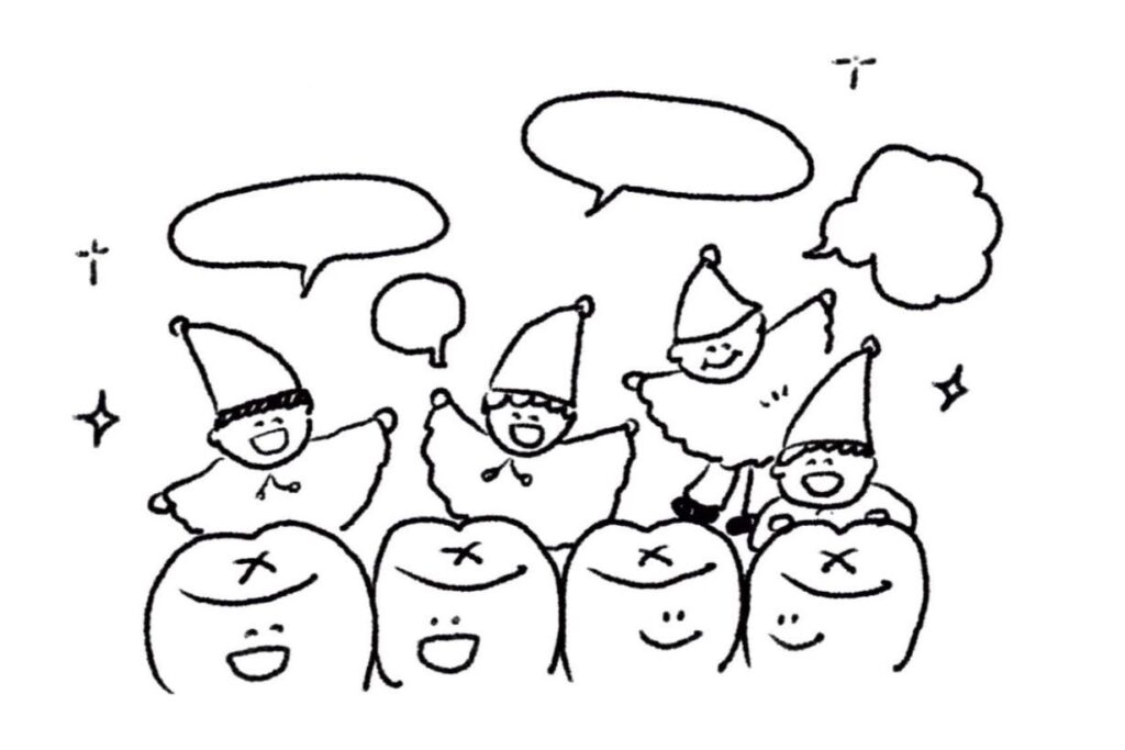 物語では、共働き家庭で育つ少女・さっこの口の中に、こびとたちがつくるテーマパークが登場。歯の上のジェットコースターなどのアトラクションを通じて、「お口をきれいに保つとテーマパークがにぎわう」という比喩で歯みがきの大切さを描きます。こどもの歯から大人の歯への生え替わりに伴う「閉園の危機」や、親になったさっこが再びこびとと出会う場面を通じて、子どもの成長や親子の時間にも焦点を当てています。