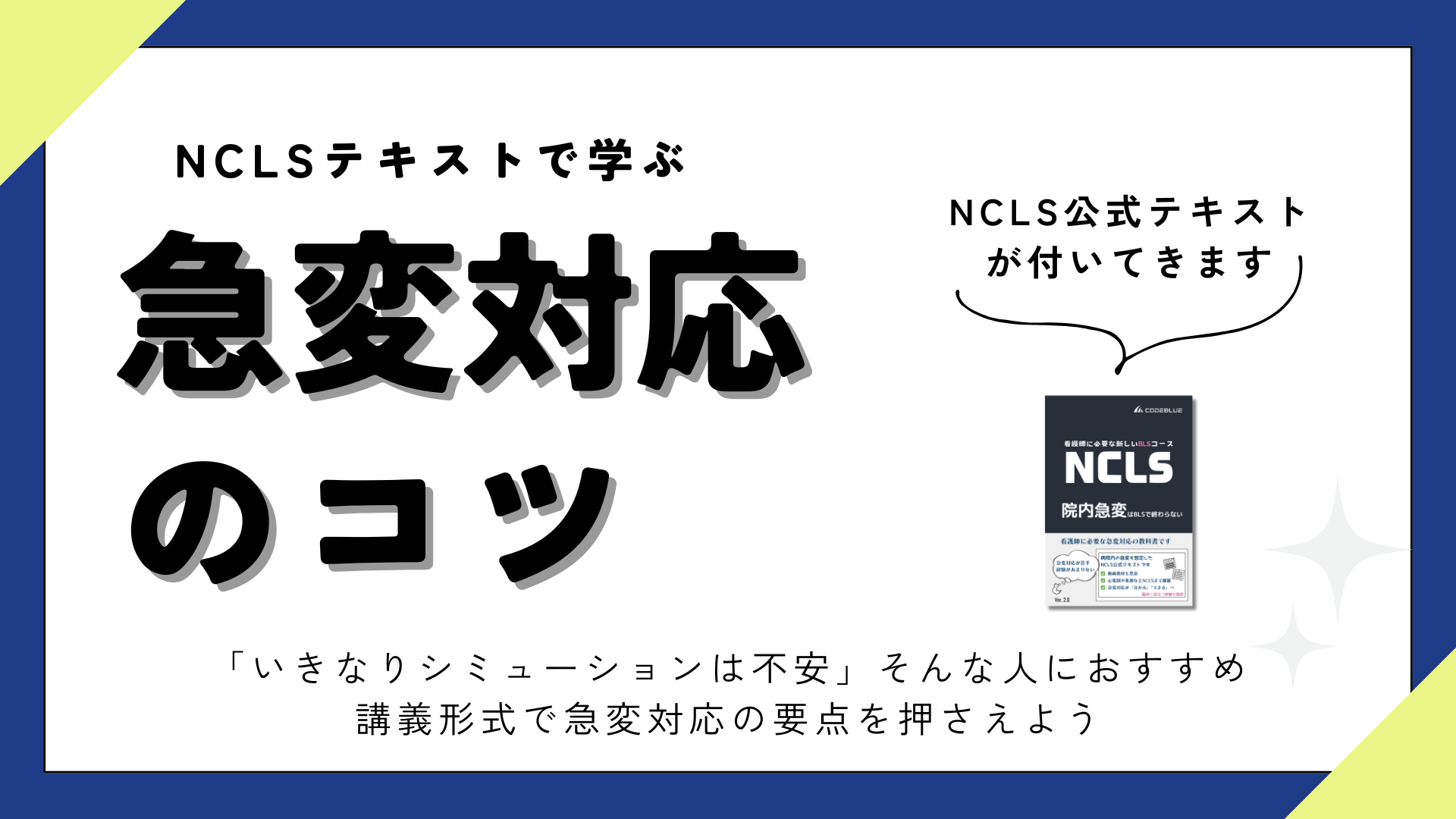 内容は心停止対応に限らず、心停止前後の評価、報告、介入の考え方を体系的に解説します。進行には約170ページのNCLS公式テキストを用い、当日会場で配布します。講師は急変対応.net代表の万波大悟氏(東京開催は別講師)です。