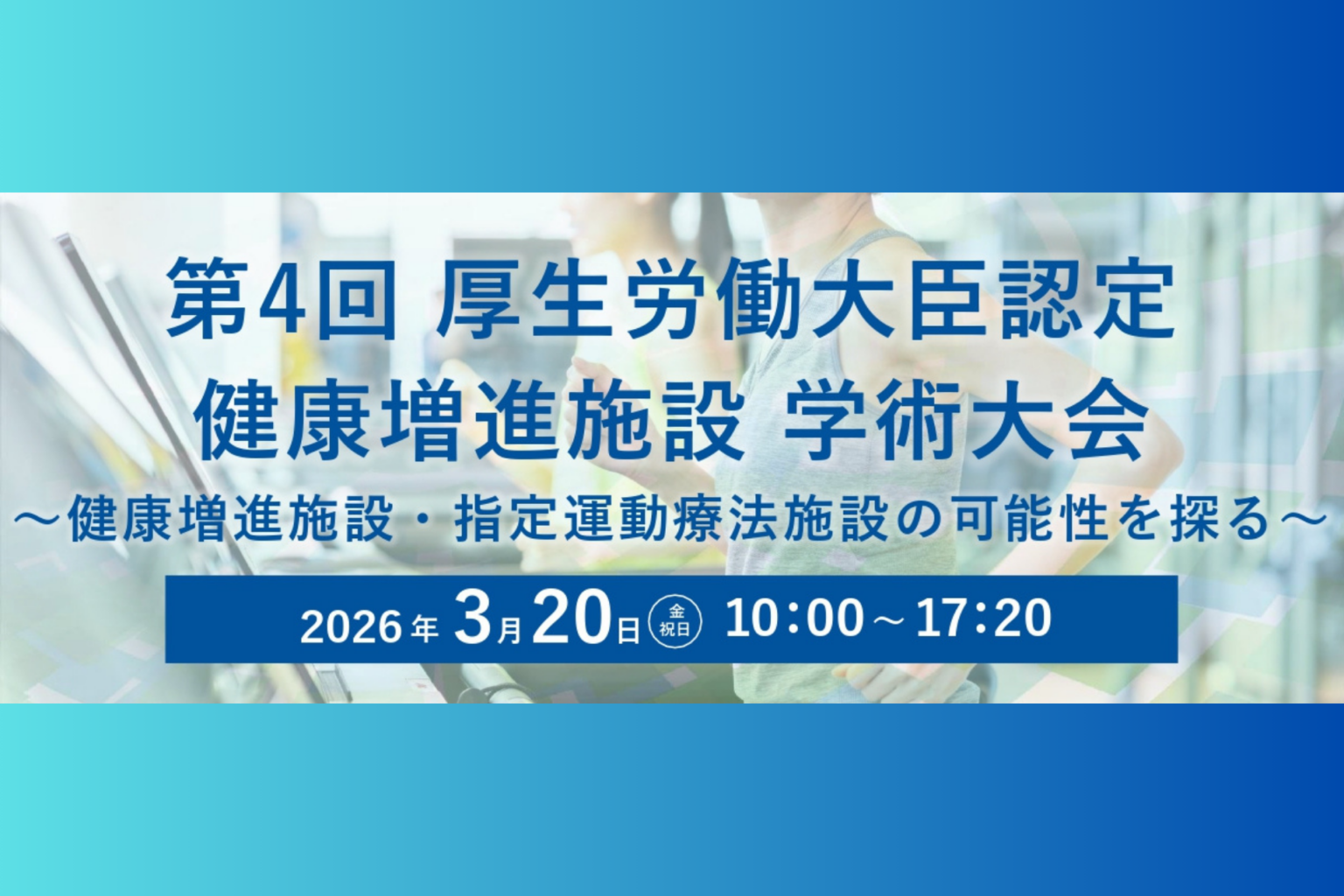 日本健康スポーツ連盟は2026年3月20日、早稲田大学で「第4回 厚生労働大臣認定 健康増進施設 学術大会」を開きます。定員は250名で、参加費は一般7,700円、認定施設所属5,500円、学生6,600円、申込期限は3月13日です。終了後は17時30分から懇親会(3,300円)も行います。