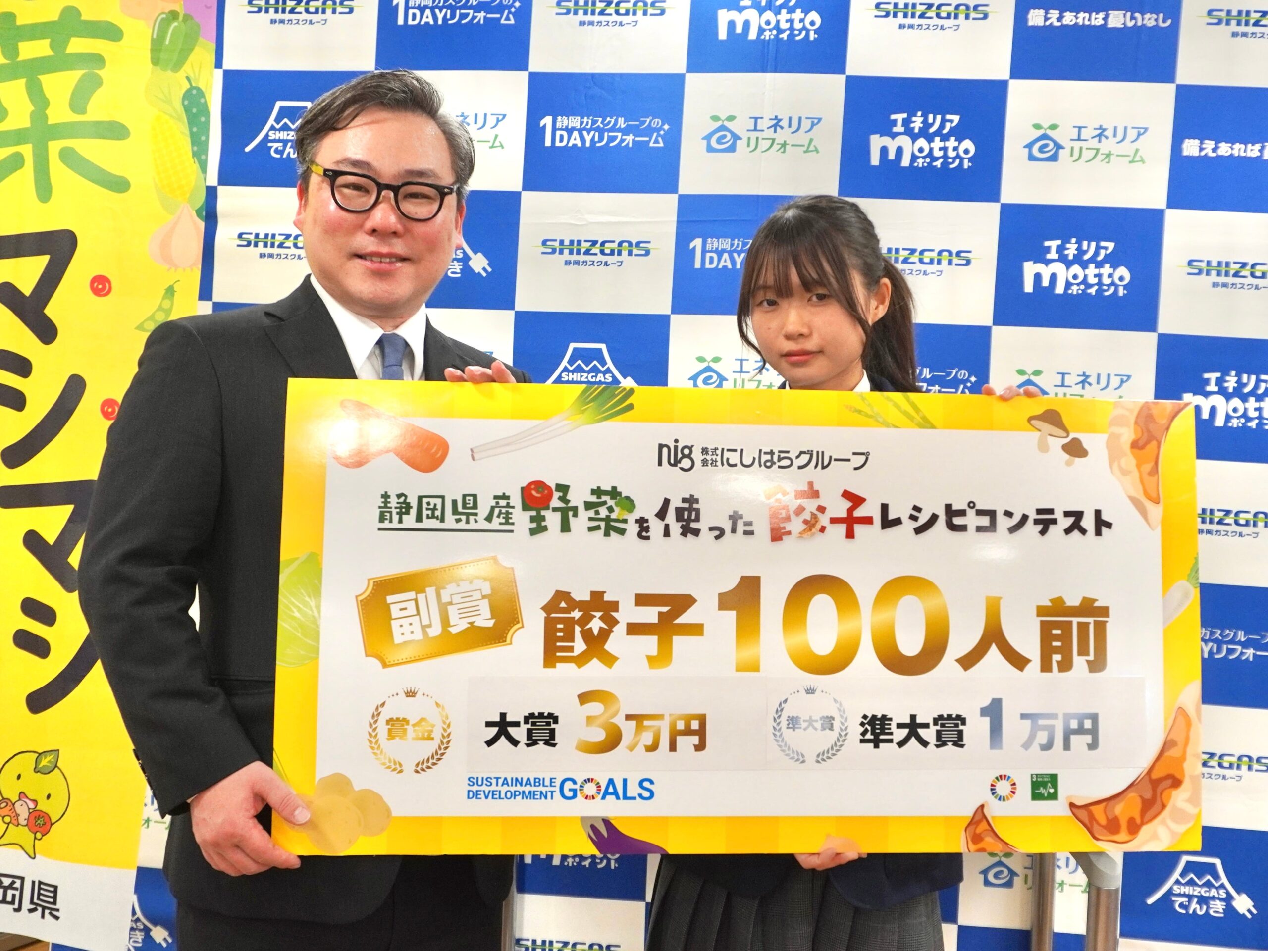 にしはらグループは2025年12月7日、静岡県と静岡県教育委員会の後援で「第3回高校生 静岡県産野菜を使った餃子レシピコンテスト」の最終審査会を静岡ガスショールーム「エネリア」で開き、応募137件から県立田方農業高等学校2年の八賀天美さんが大賞を受賞しました。