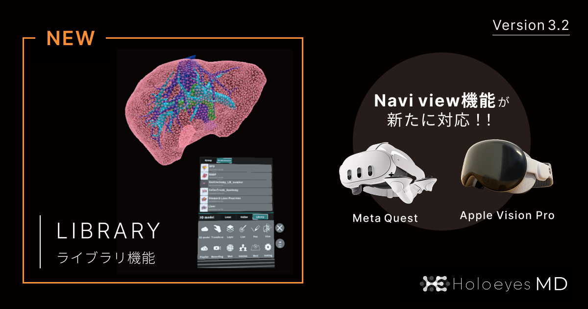 Holoeyes(東京都港区)は2026年1月27日、医療用画像処理ソフトウェア「Holoeyes MD」の最新バージョンVer.3.2を公開し、施設間で症例の3Dモデルを共有できる「Library機能」を新たに搭載しました。同ソフトは管理医療機器(クラスⅡ)に分類され、認証番号は302ADBZX00011000、認証日は令和2年2月28日です。