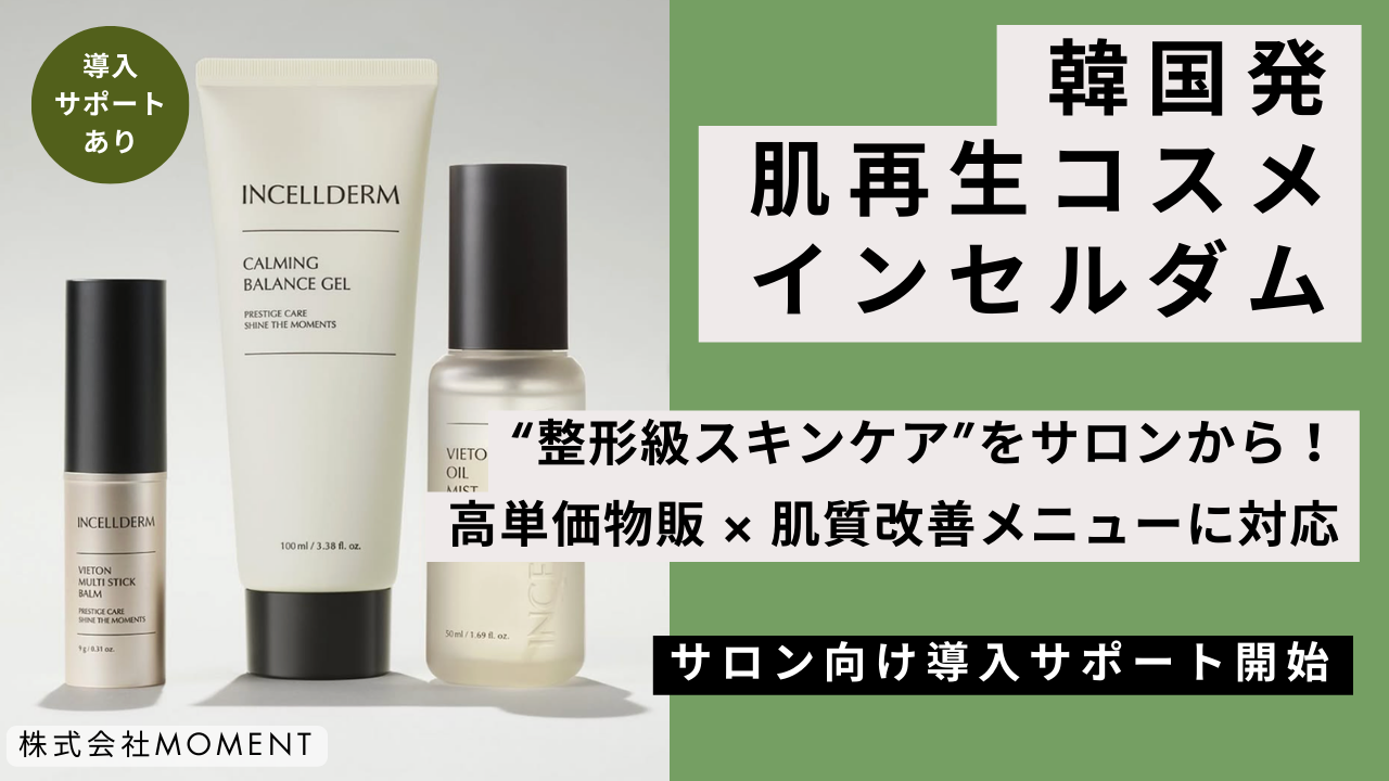 株式会社Moment(東京都渋谷区円山町)は2月18日、韓国発の肌再生型スキンケアブランド「インセルダム(INCELLDERM|ICD)」について、エステサロンなど事業者向けの導入支援を正式に開始しました。短期集中の「7日間プログラム」を軸に、施術外の物販売上づくりを支援します。
