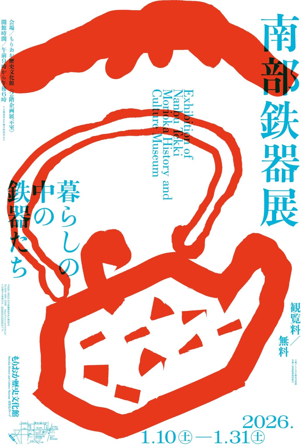 特別展「南部鉄器展-暮らしの中の鉄器たち-」2026年1月10日(土)~1月31日(土) もりおか歴史文化館2階企画展示室 観覧無料