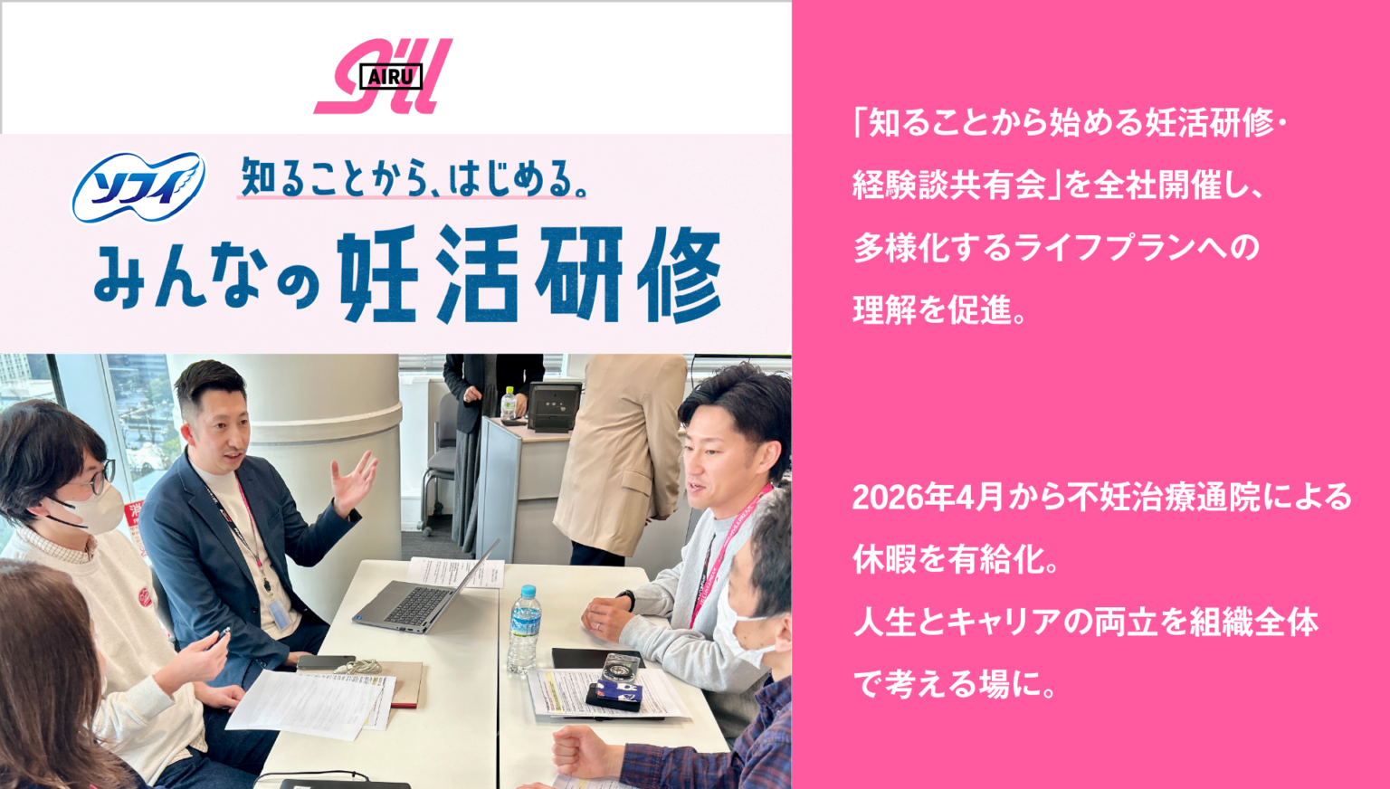 株式会社アイル(大阪市北区・東京都港区)は2026年2月、ユニ・チャーム株式会社の「知ることから、はじめる。みんなの妊活研修」を主催プログラムとして全社で実施しました。東京本社のリアル会場は30人、オンラインは約120人が参加し、参加者の9割はマネージャー・リーダーでした。