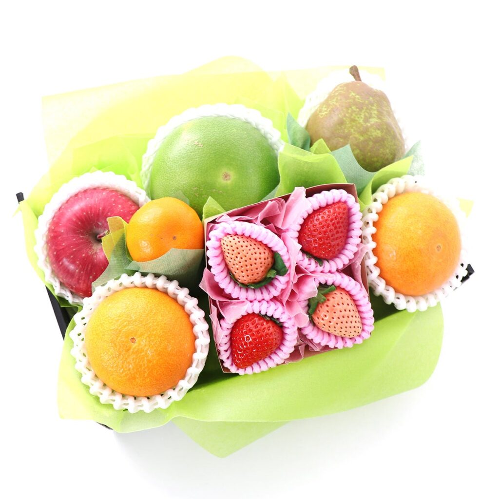 内容:紅まどんな2玉、紅白いちご(赤2/白2)、みかん、りんご、ラフランス、メロゴールド