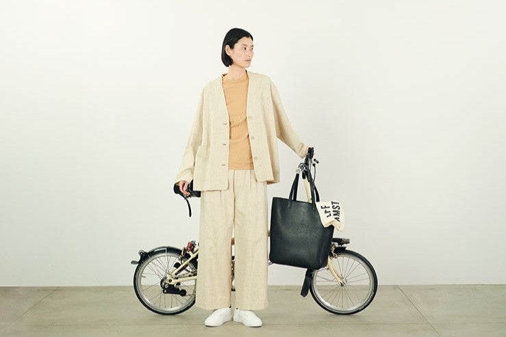素材面では「東炊き(あずまだき)」の麻を使ったワンピースも展開します。東炊きは小ロットでゆっくり染め・洗いをかけ、風合いを出す加工のことです。V-NECK SHIRT DRESSは¥37,400で、4月4日の発売予定です。