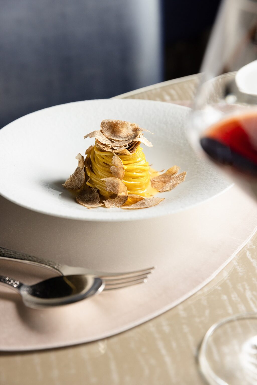 冬の定番料理トルテッリーニ イン ブロード(詰め物パスタを澄んだブロード=だしで味わう)や、ピエモンテ産ホワイトトリュフを使うタリオリーニなどを組み込み、デザートまで季節仕様にします。同期間、11階ラウンジバーではアフタヌーンティー(平日6000円、土日祝7000円、12:00〜ほか要予約)と、18:00〜提供のアペリティーボ(1万2000円、ドリンク90分フリーフロー、要予約)も展開。年末は12月26日〜1月6日が休業で、1月7日18時から通常営業に戻ります。