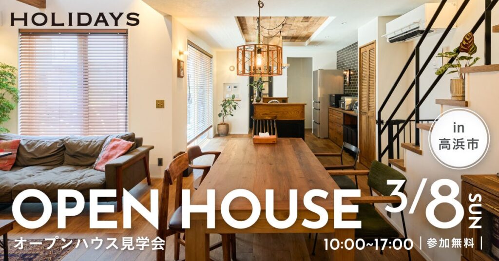 株式会社sumarch(本社:名古屋市中村区)は、注文住宅ブランド「HOLIDAYS」のオーナー宅を公開する見学会を、2026年3月8日10時~17時に愛知県高浜市で1日限定開催します。参加費は無料で事前予約制、申込締切は3月7日までです。
