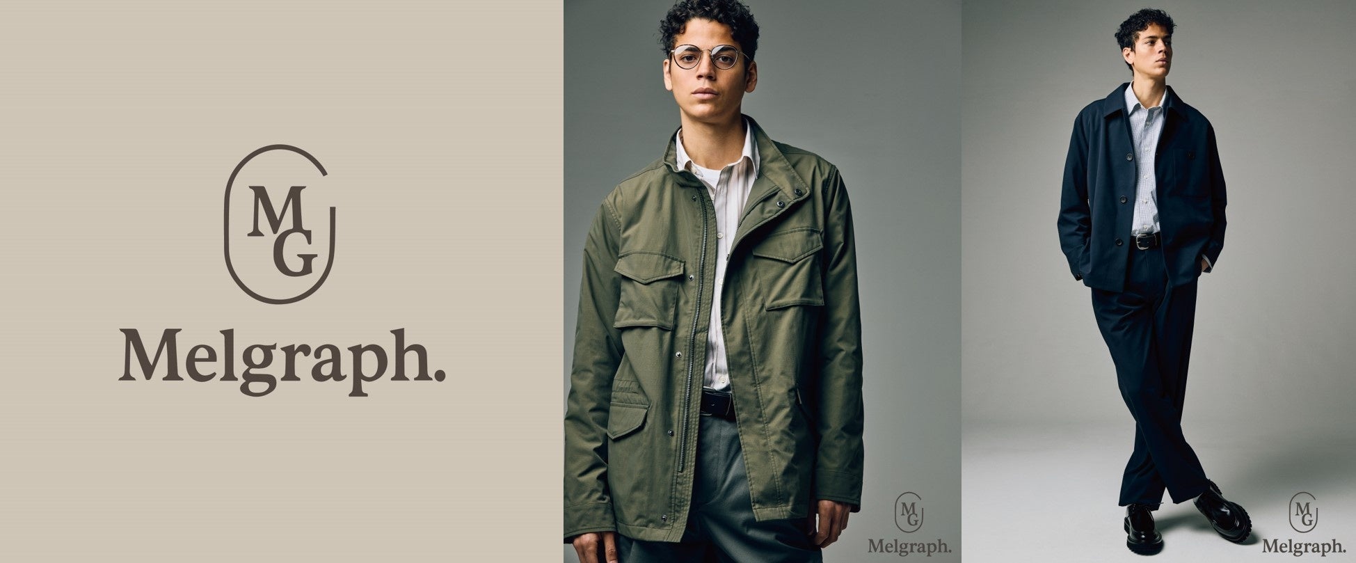 メルグラフは流行と伝統を融合した洗練カジュアルを掲げ、40代・50代男性の普段着需要を狙います。価格例はM-65ブルゾンが本体7,800円(税込8,580円)、梳毛調シャツジャケットが本体7,800円(税込8,580円)、梳毛調トラウザーが本体3,980円(税込4,378円)です。梳毛調はウールのような見た目を再現した素材表現を指します。