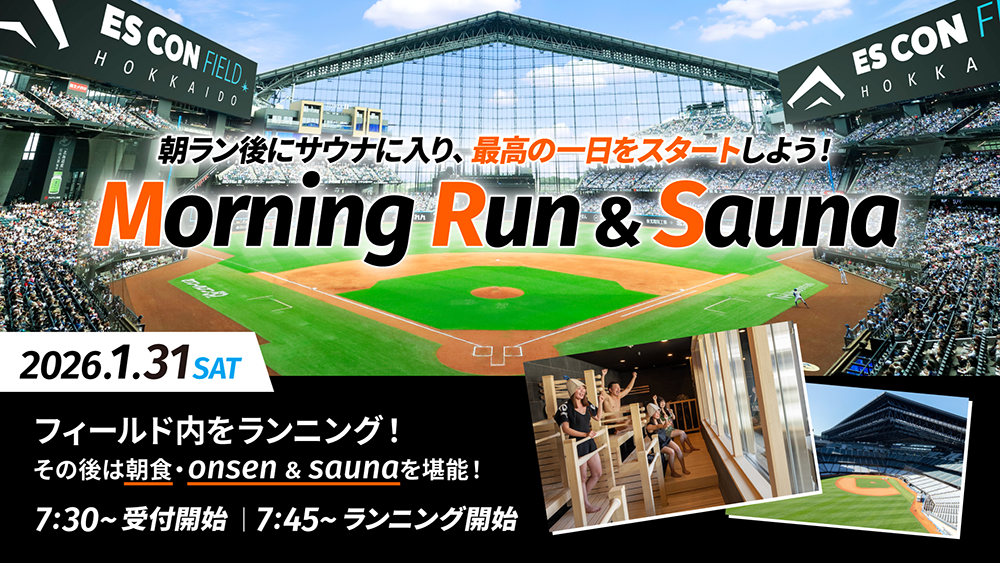 エスコンフィールドHOKKAIDOで2026年1月31日(土)、「Morning Run & Sauna」が開かれます。球場内のグラウンドレベルを走った後、球場内天然温泉「tower eleven onsen & sauna」を利用でき、定員は40人の事前予約制です。参加費は大人3,500円(税込)、小学生以下は半額で、温泉・サウナ、ロッカー、朝食(ドリンク付)まで含みます。冬の天候に左右されにくい屋内の球場空間をコースにするのが特徴で、走るペースは各自で調整できます。ラン後は店舗「HOTDOG FUN」でシャウエッセンホットドッグの朝食を提供し、サウナのBarゾーンで乾杯と食事の時間も設けます。受付は7時30分開始、7時45分にランを開始し、11時に完全撤収の予定です。タオルは無料レンタルで、水着・ポンチョは有料レンタル1,000円または持参とされ、当日受付は行いません。主催側は2月以降の開催案内を別途告知するとしています。