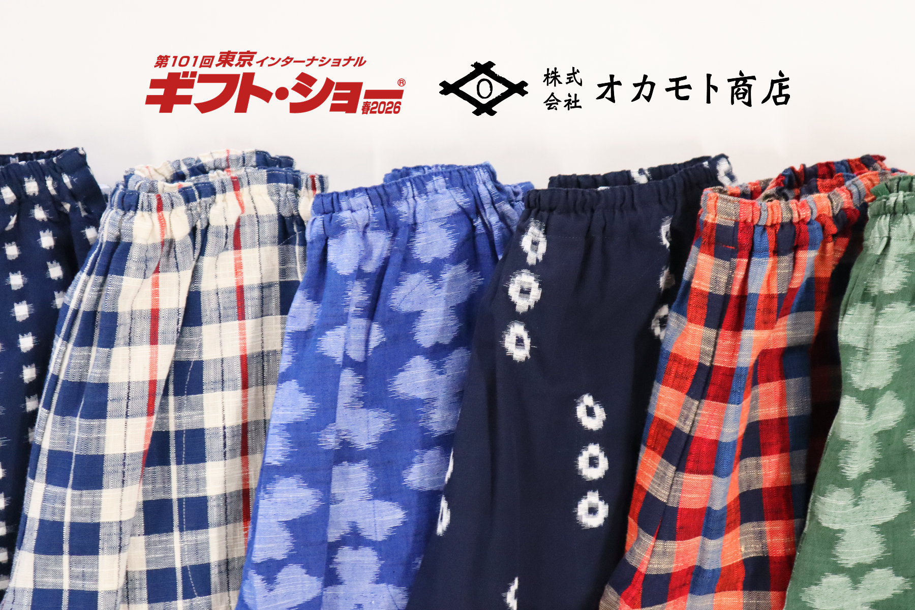 オカモト商店(福岡県久留米市)は、福岡の伝統織物「久留米絣」を現代的に再編集した新作雑貨・アパレルと、主力商品「もんぱん®」などを、2026年2月4日〜6日に東京ビッグサイトで開かれる「第101回 東京インターナショナル・ギフト・ショー春2026」で展示します。出展は東5-FS12(ファッションセレクト)です。
