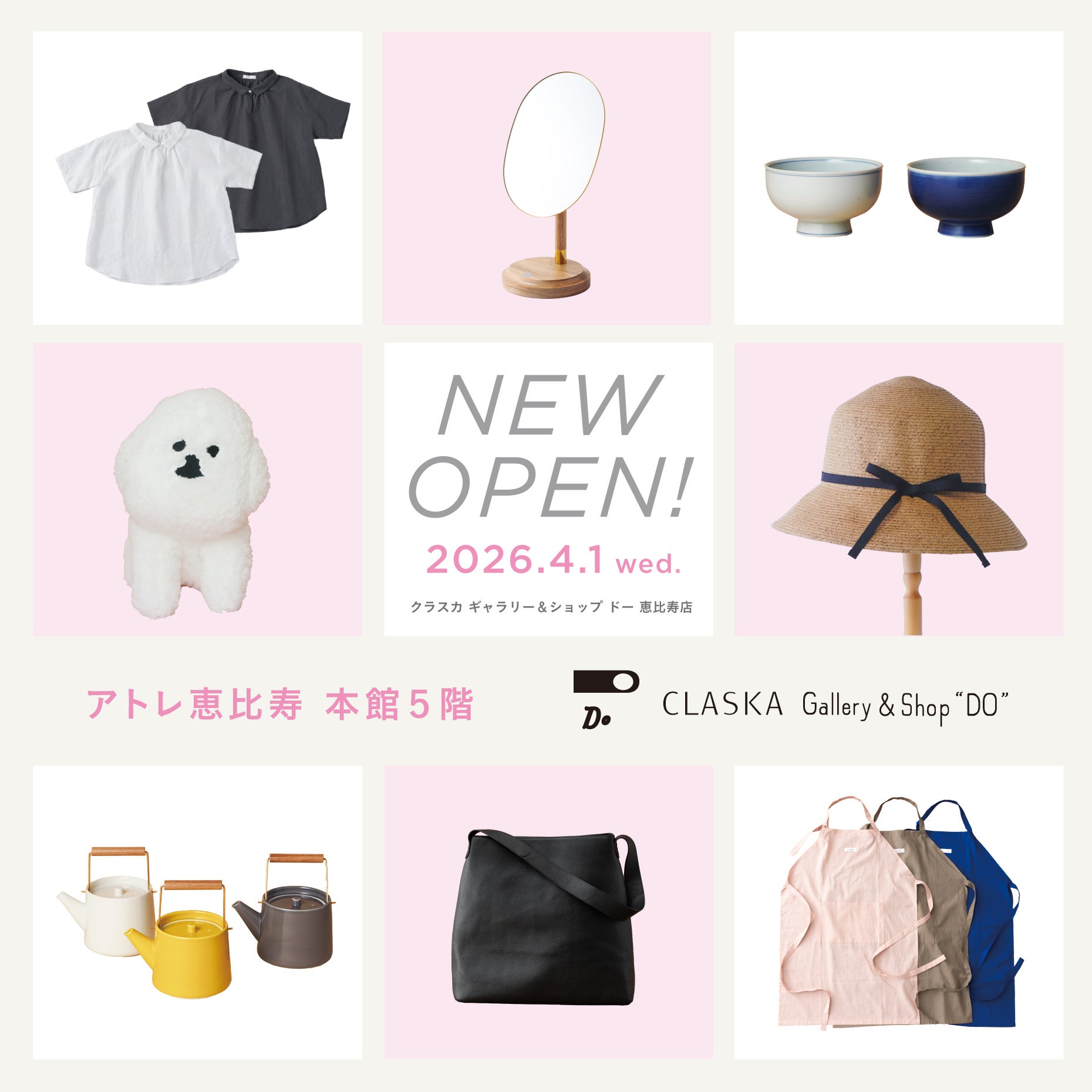 株式会社クラスカは2026年4月1日、ライフスタイルショップ「CLASKA Gallery & Shop “DO”」の新店舗「恵比寿店」をアトレ恵比寿本館5階(東京都渋谷区)に開く。営業時間は10:00~20:00で、休業日は館の休館日に準ずる。