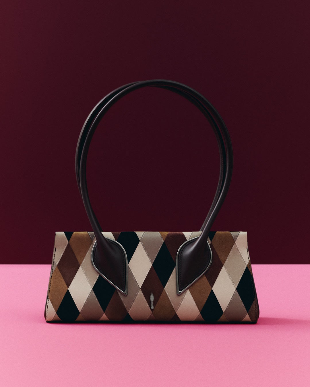象徴的な“レッドソール”を想起させるポイント型ハンドルと、メタリックソールロゴが全モデルのフロントに配され、ブランドのクラフツマンシップを強調します。2026年春夏コレクションのテーマであるサーカスの世界観を反映したマルチカラーの限定バゲットバッグは、7種類の異素材を組み合わせ、ダイヤ型パーツを職人が1点ずつ縫い合わせたアートピース的存在となっています。