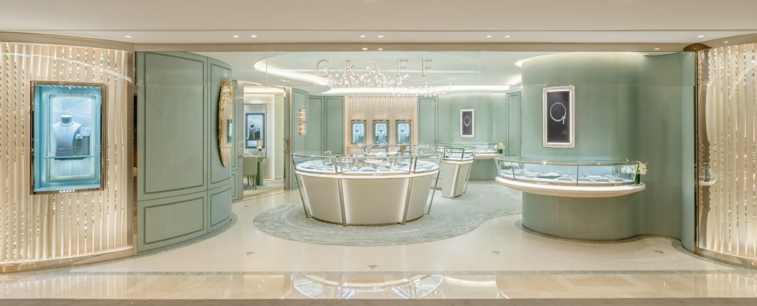 英国発のダイヤモンドジュエラー「グラフ」は2025年11月13日、京都市下京区の京都髙島屋S.C.2階に「グラフ京都髙島屋店」を開設し、日本国内の店舗数を12店に拡大しました。場所は京都の文化の中心地とされる四条エリアで、来店客にジュエリーやブライダル、ハイジュエリーの提案機会を広げます。店内にはソリテールリングやブライダルジュエリーに加え、「バタフライ」「ティルダズ ボウ」「ローレンス グラフ シグネチャー」などのコレクションを展開します。設えはパールホワイトとゴールドを基調に、ブランドの「アイコン」モチーフを用いた意匠や、ダイヤモンドのカット面(ファセット)から着想したショーケースを採用。スライドドアで区切るVIPルームも備え、落ち着いた空間でハイジュエリーの閲覧を想定します。今後は京都の観光需要も背景に、国内外顧客の接点拡大が焦点となります。