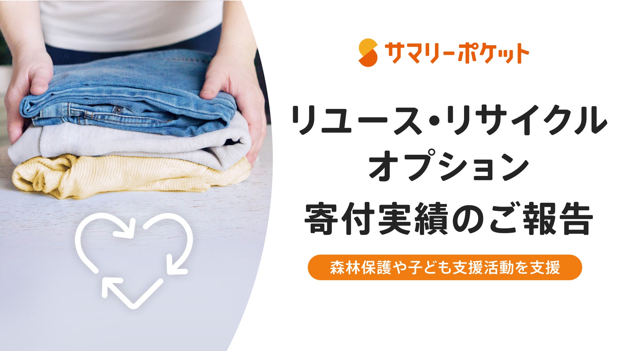 預けて暮らしを整える、サマリーポケット「リユース・リサイクルオプション」寄付実績のご報告