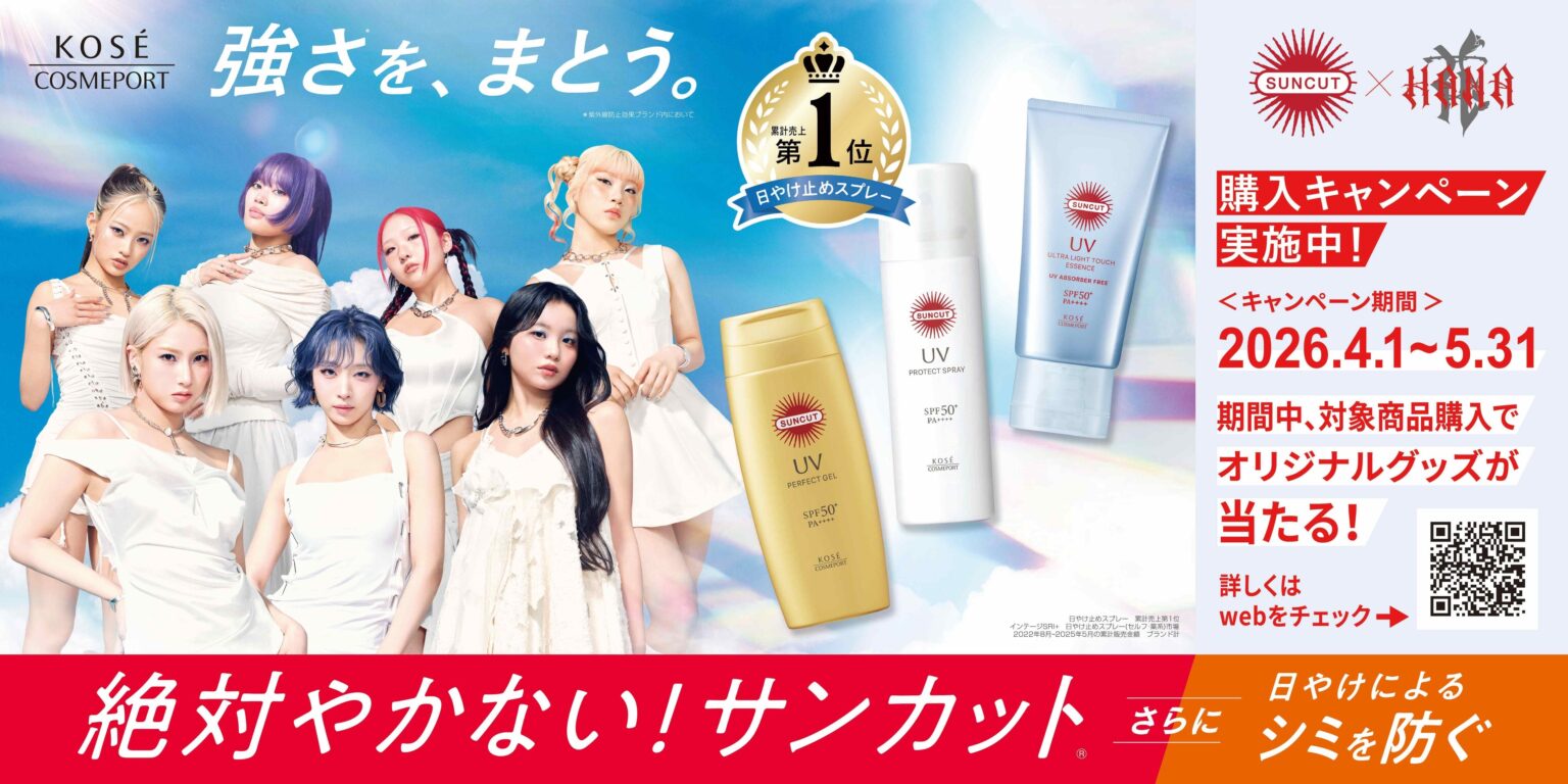 コーセーコスメポート(東京都中央区)のUVブランド『サンカット®』は、7人組ガールズグループ「HANA」を起用した新TVCM「強さ※を、まとう。」篇を2026年3月25日にYouTubeで先行公開し、4月1日から全国で放映します。あわせて購入キャンペーンを4月1日〜5月31日に実施し、抽選で計500名にオリジナルグッズを提供します。