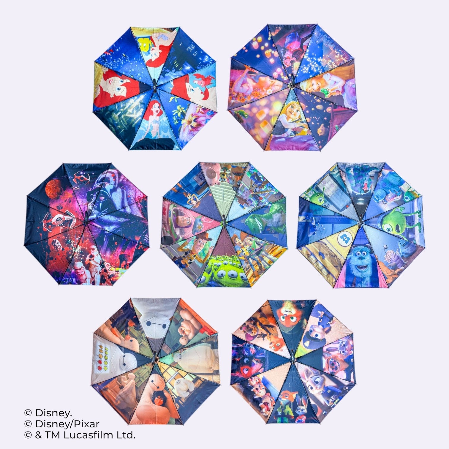 スケーター(奈良県奈良市)は、ディズニー、ディズニー・ピクサー、スター・ウォーズの作品世界を傘の内側に表現した「晴雨兼用両面印刷折りたたみ傘」(全7種)を発売します。価格は各5,500円(税込)で、親骨は約55cmです。2026年2月25日~3月16日に銀座三越の催事で先行販売し、3月17日に一般販売を開始します。
