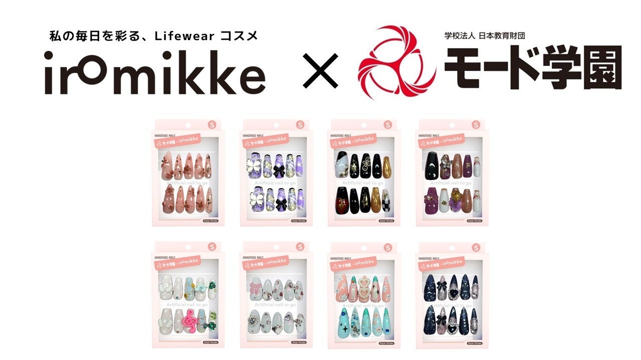 コスメブランド「iromikke(イロミッケ)」は12月8日、モード学園との産学連携コラボ第4弾となるネイルチップをドン・キホーテ(一部店舗除く)で数量限定発売しました。テーマは「和柄」「パーティー柄」の2系統で全8デザイン、価格は1,600円(税抜)です。