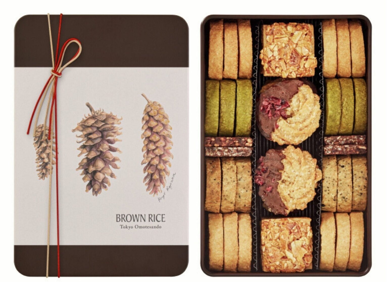 パッケージのスリーブには、BROWN RICE 店主・梶原建二による「松毬(まつかさ)」のイラストを採用。年末年始の手土産やお歳暮といったギフト需要に対応するデザインです。6種40枚というボリュームは、家族や職場でのシェアにも向いています。