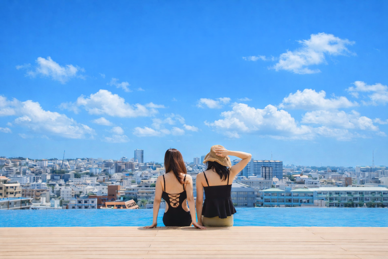 背景として、ホテルは首里の高台に位置し、3階のプールから那覇の景色を望めることを特徴としています。桜の時期からプールシーズンを楽しめるようにし、昼はパノラマビュー、夕暮れは空の色の変化、夜は夜景とライトアップで異なる景色を提供するとしています。