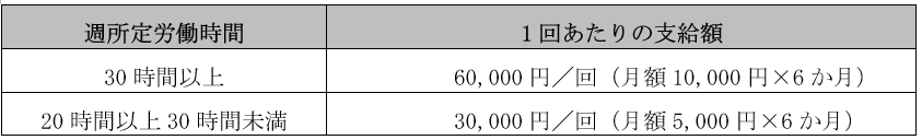 支給は年2回で、6月と12月に行います。対象は障害のあるエキスパートスタッフで、長期就業を続けやすくすることを狙いとしています。週所定労働時間は、派遣先であらかじめ定めた1週間の勤務時間を指します。