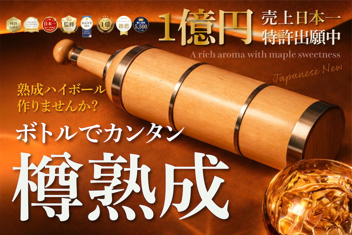 山梨県大月市に本社を置くBACCIのハイボール専用ブランド「MAGIC BARREL」は2026年3月16日、家庭で“熟成体験”をうたうメープル製の熟成ボトルをCAMPFIREで先行発売しました。プロジェクトは公開直後に支援額1,000万円、支援人数600人を突破しています。実施期間は3月14日〜5月31日です。