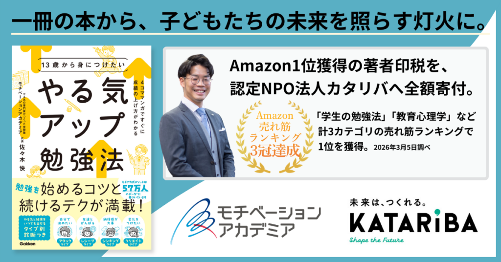リンクアンドモチベーションのグループで学習塾を運営するモチベーションアカデミアは3月24日、3月5日発売の書籍『13歳から身につけたい やる気アップ勉強法』(Gakken)について、著者印税の全額を認定NPO法人カタリバへ寄付すると明らかにしました。同書はAmazon売れ筋ランキングで計3カテゴリ1位(3月5日調べ)となっています。